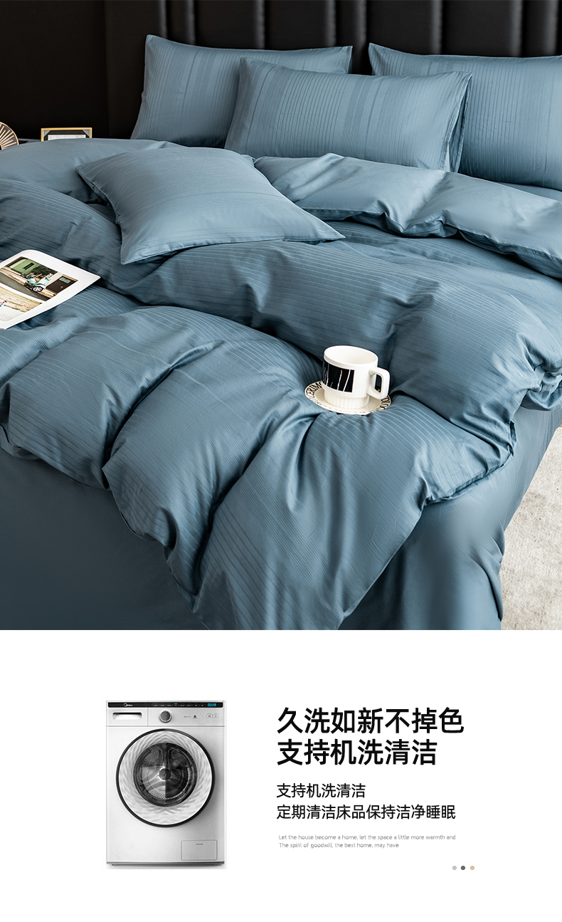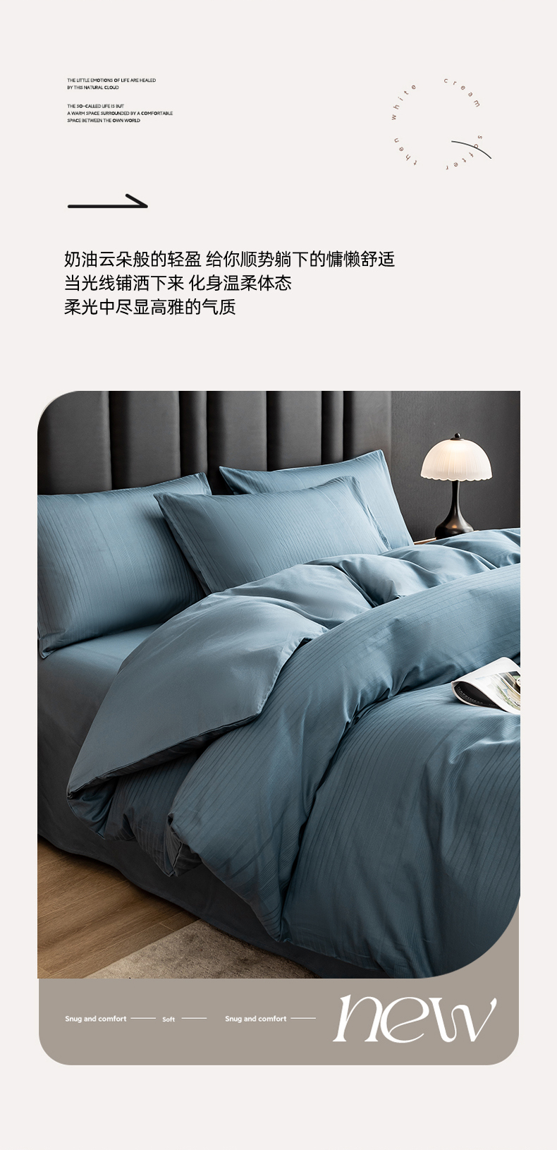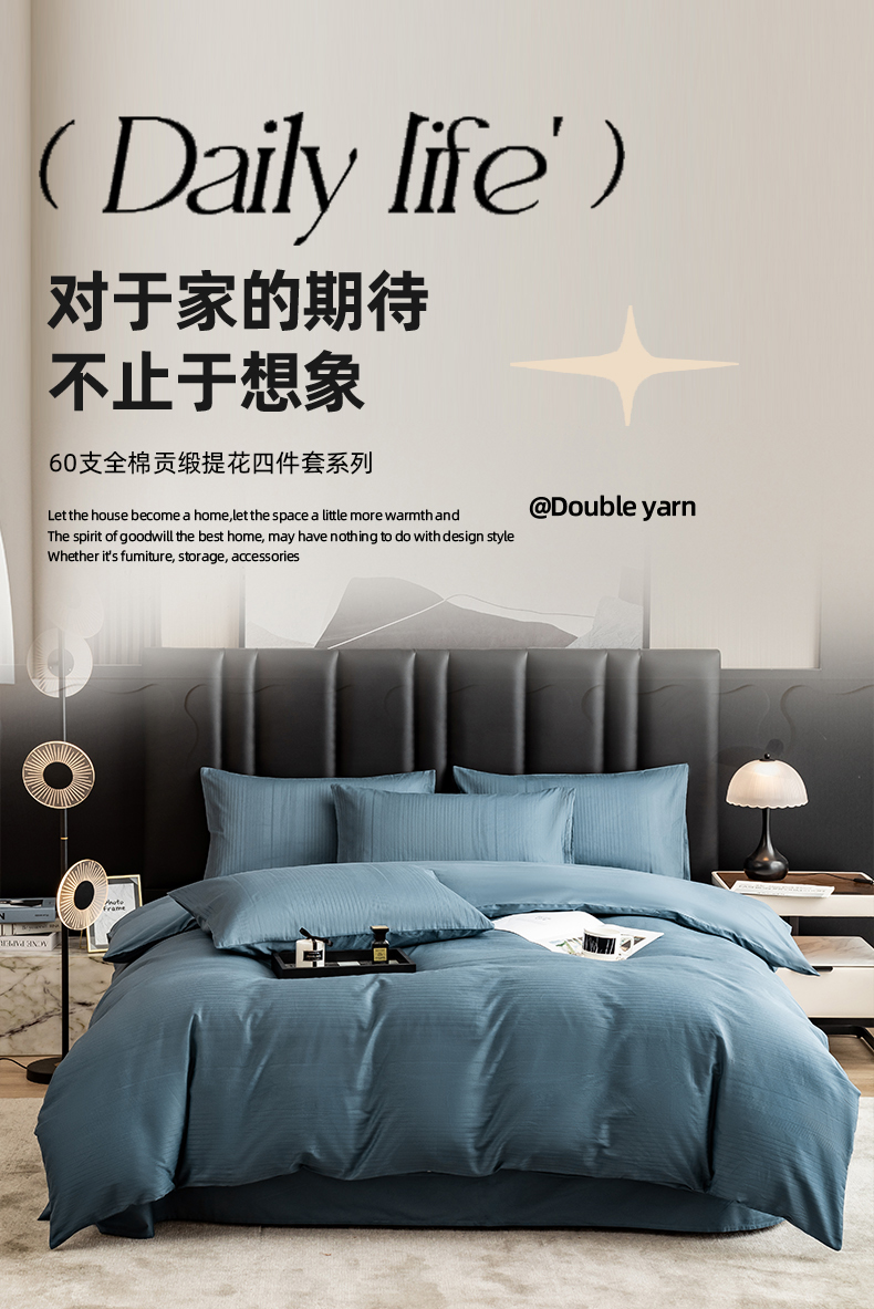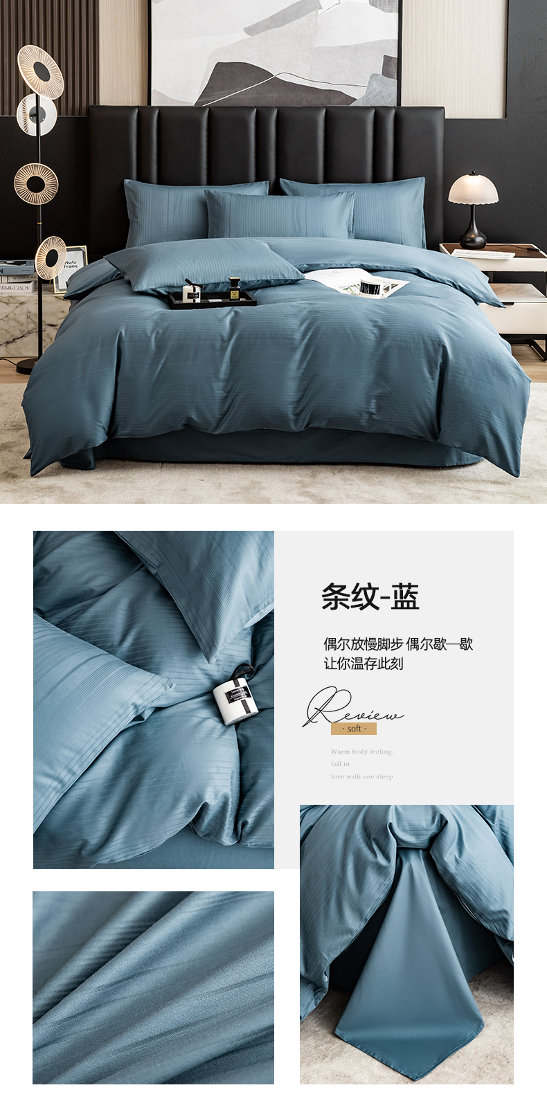 简宜家居 2025新款60S长绒棉提花四件套 条纹-蓝
