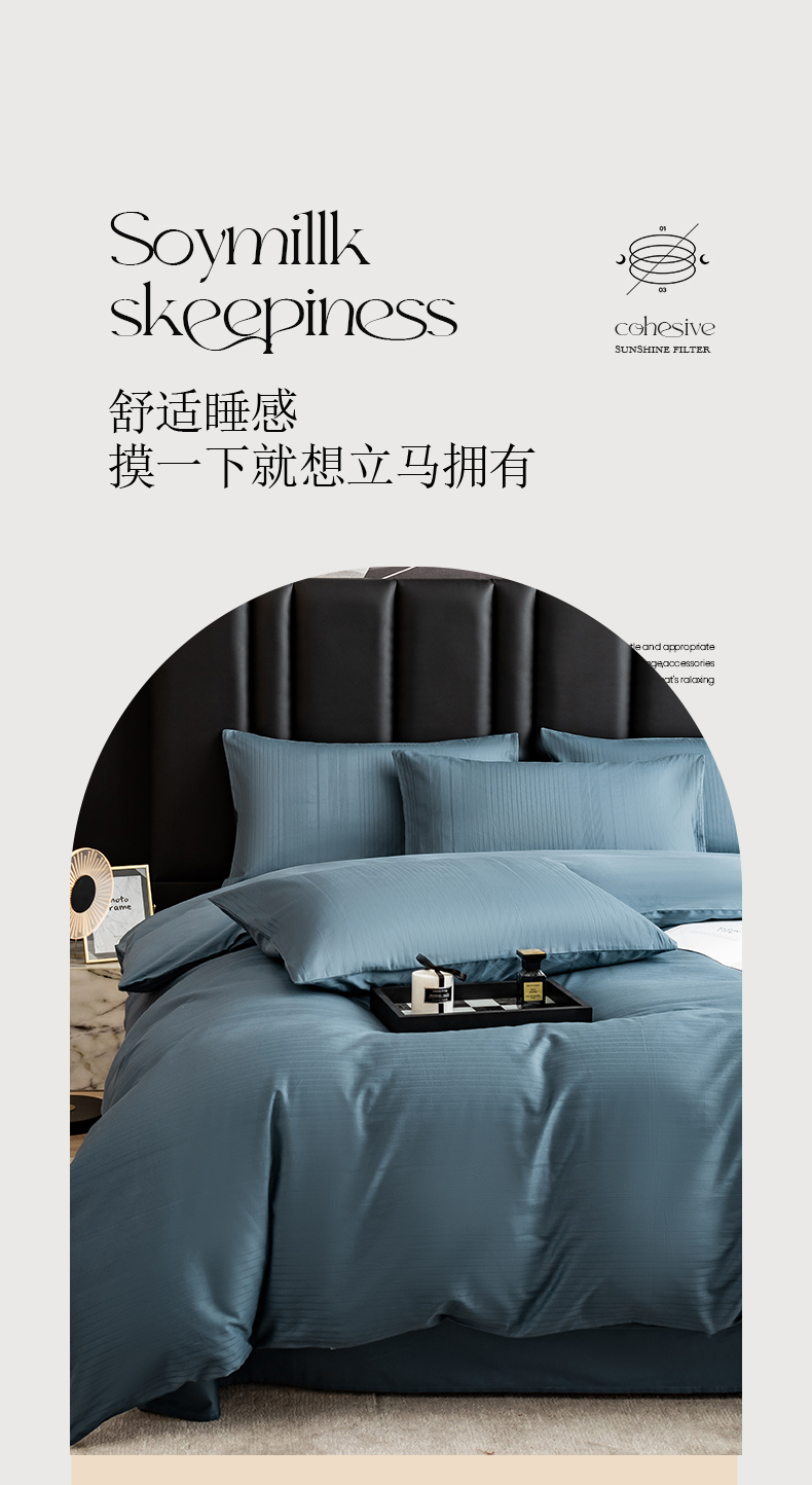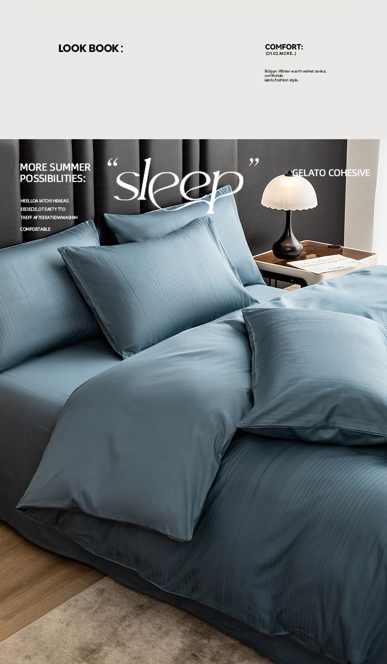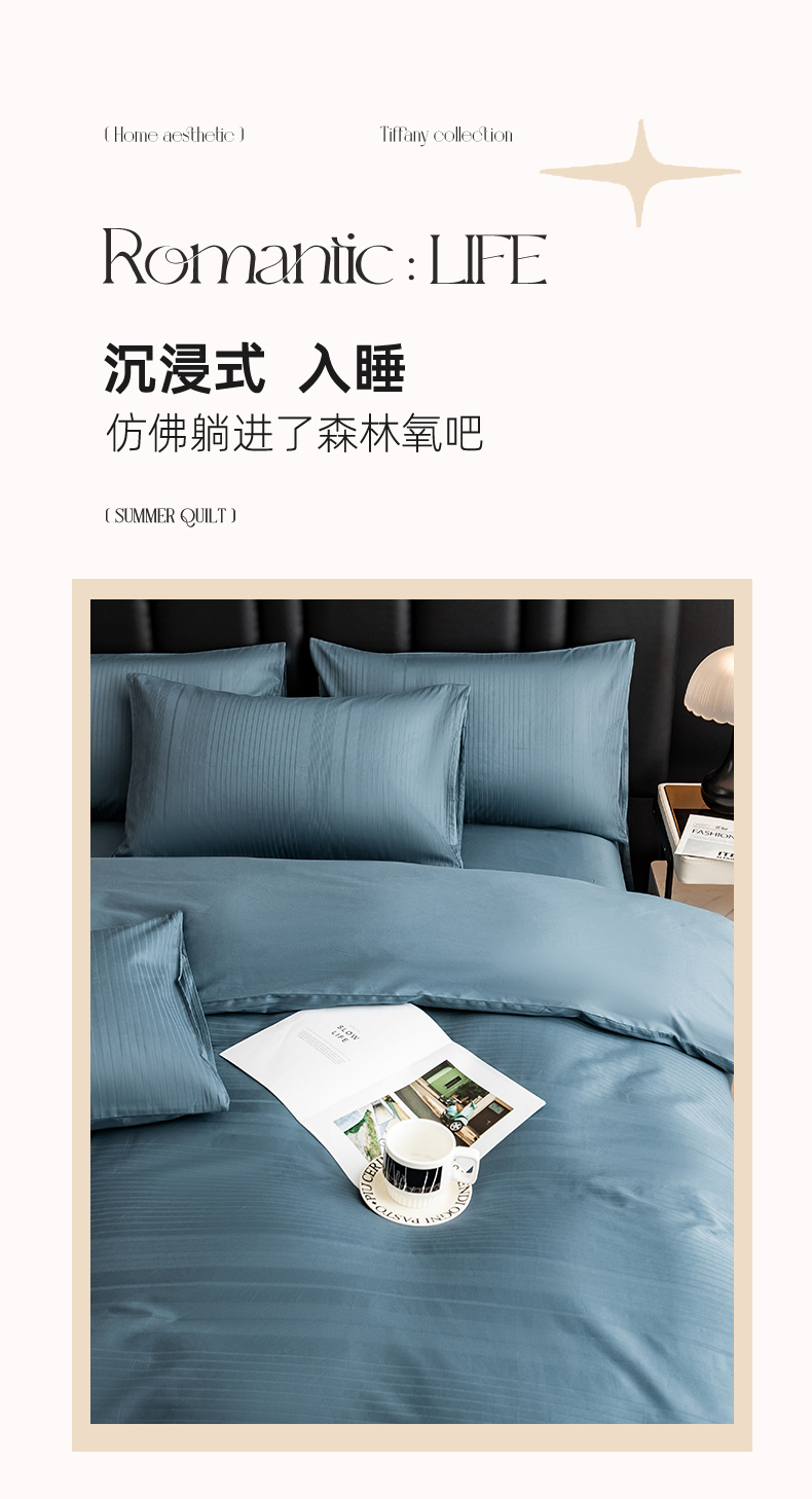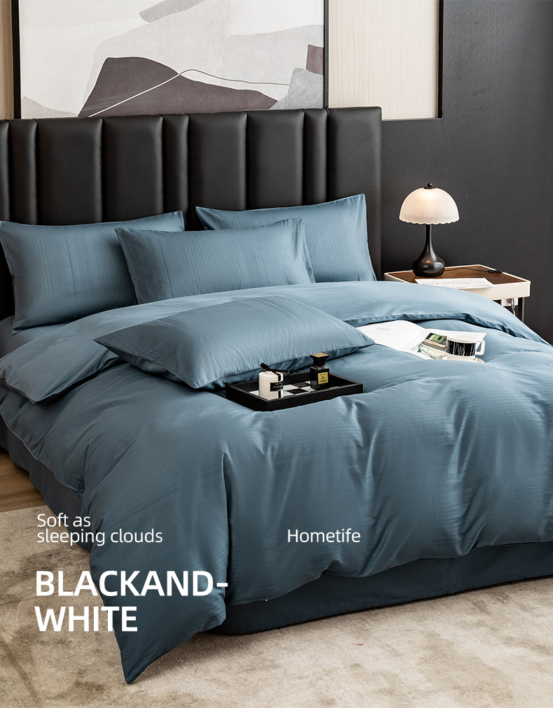 简宜家居 2025新款60S长绒棉提花四件套 条纹-蓝