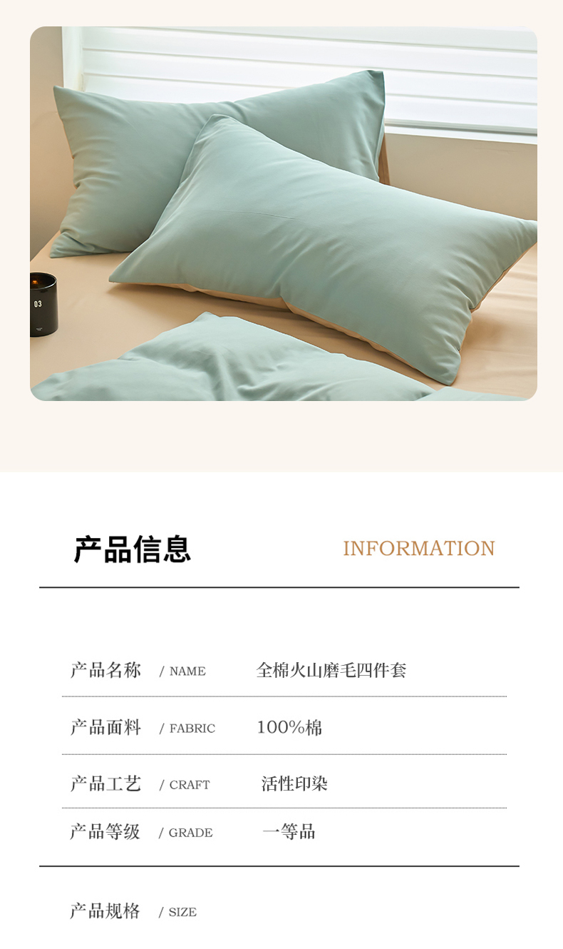 商品名称:(总)沐晴家纺 2024新款纯色火山保暖全棉磨毛纯色简约轻奢四件套