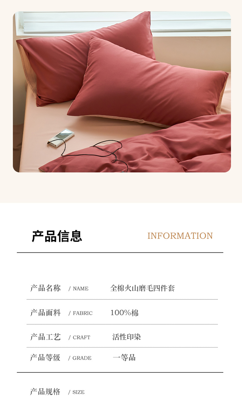 当前位置: 91家纺网 > 商品网购 > 床品套件 > 四件套 > 普通磨毛四件套 > 沐晴家纺 2024新款纯色火山保暖全棉磨毛纯色简约轻奢四件套 维粉