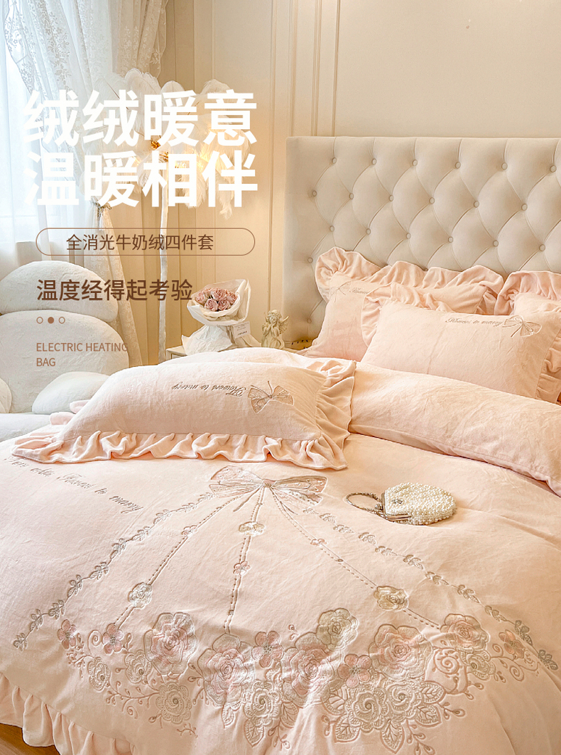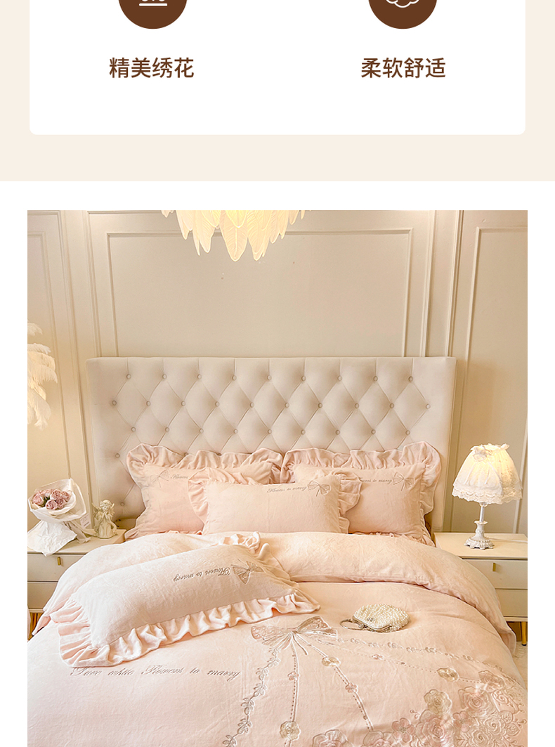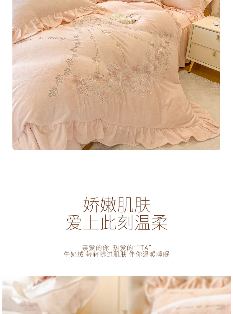当前位置: 91家纺网 > 商品网购 > 床品套件 > 四件套 > 牛奶绒四件套 > (总)亲亲公主 2025新款全消光230克绒绣花四件套- 梦幻巴黎