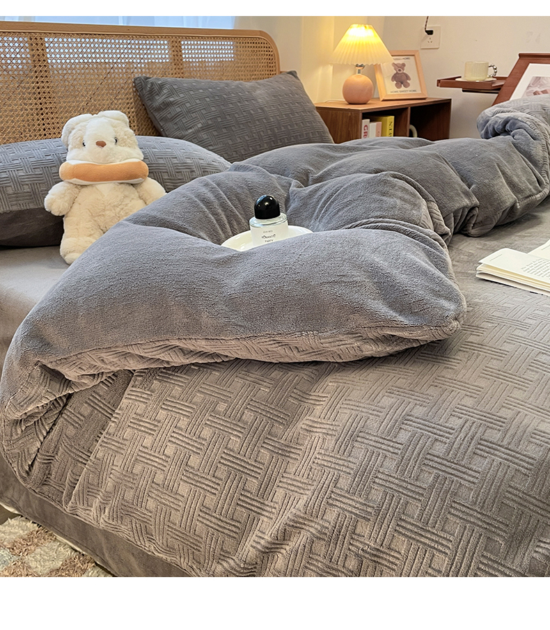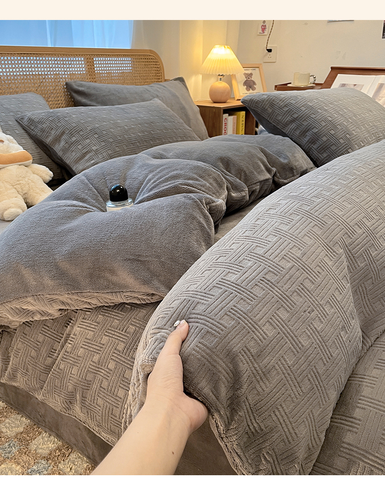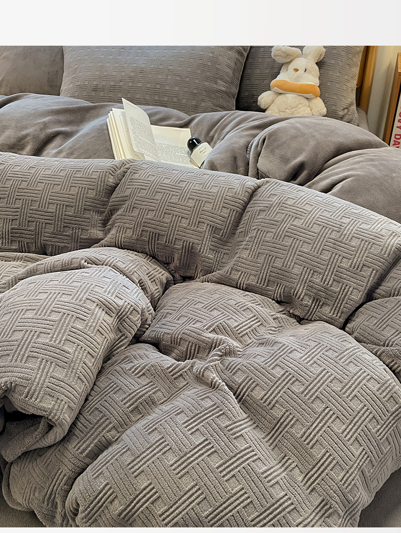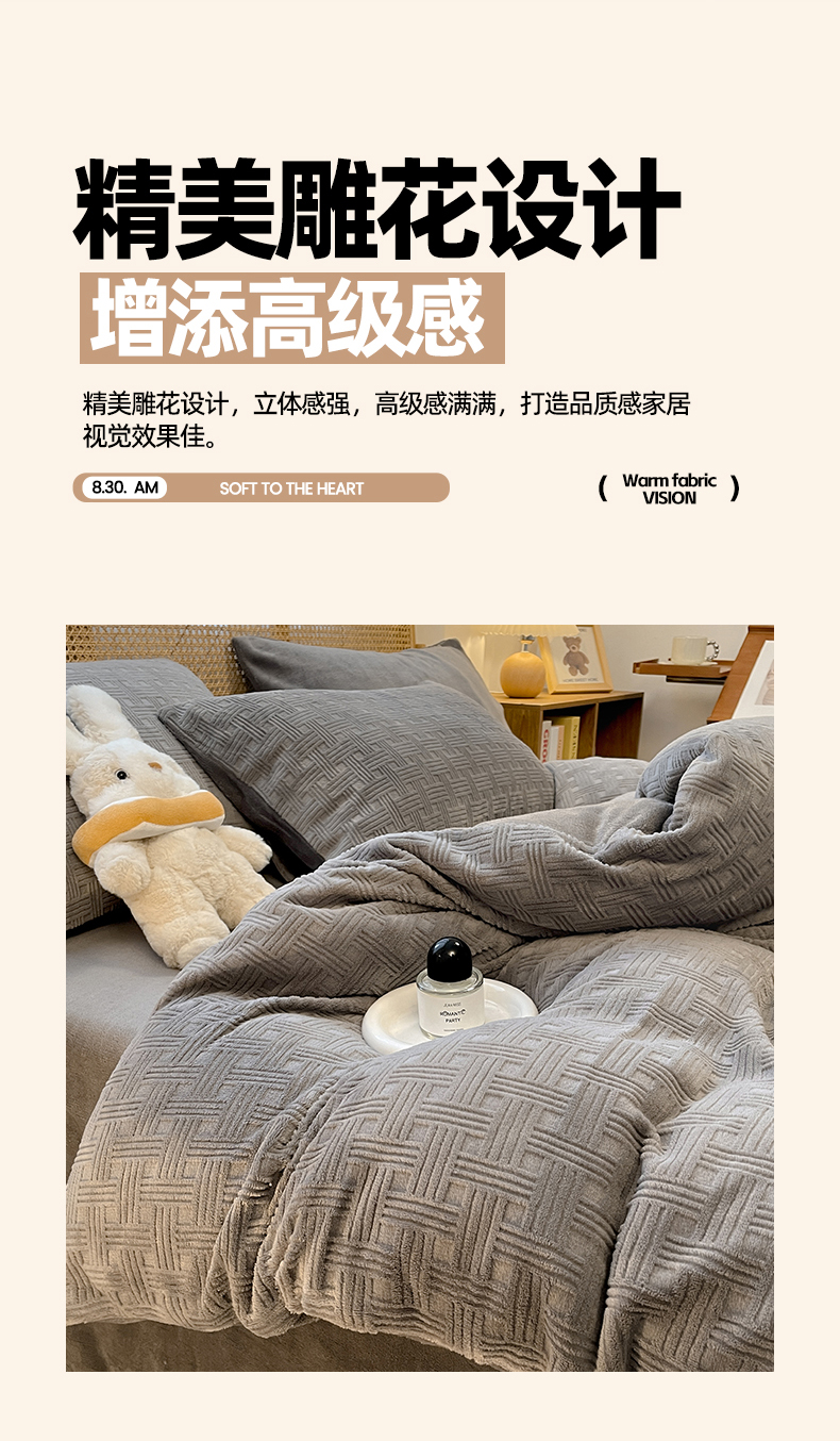 当前位置: 91家纺网 > 商品网购 > 床品套件 > 四件套 > 牛奶绒四件套 > 莱茵家居 2024新款A类高克重雕花牛奶绒四件套-糖果格 糖果格-深灰