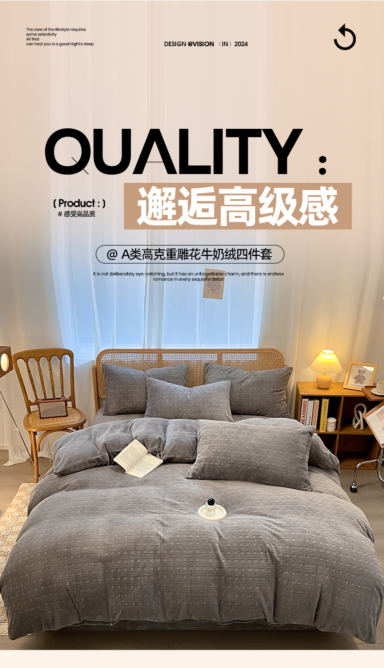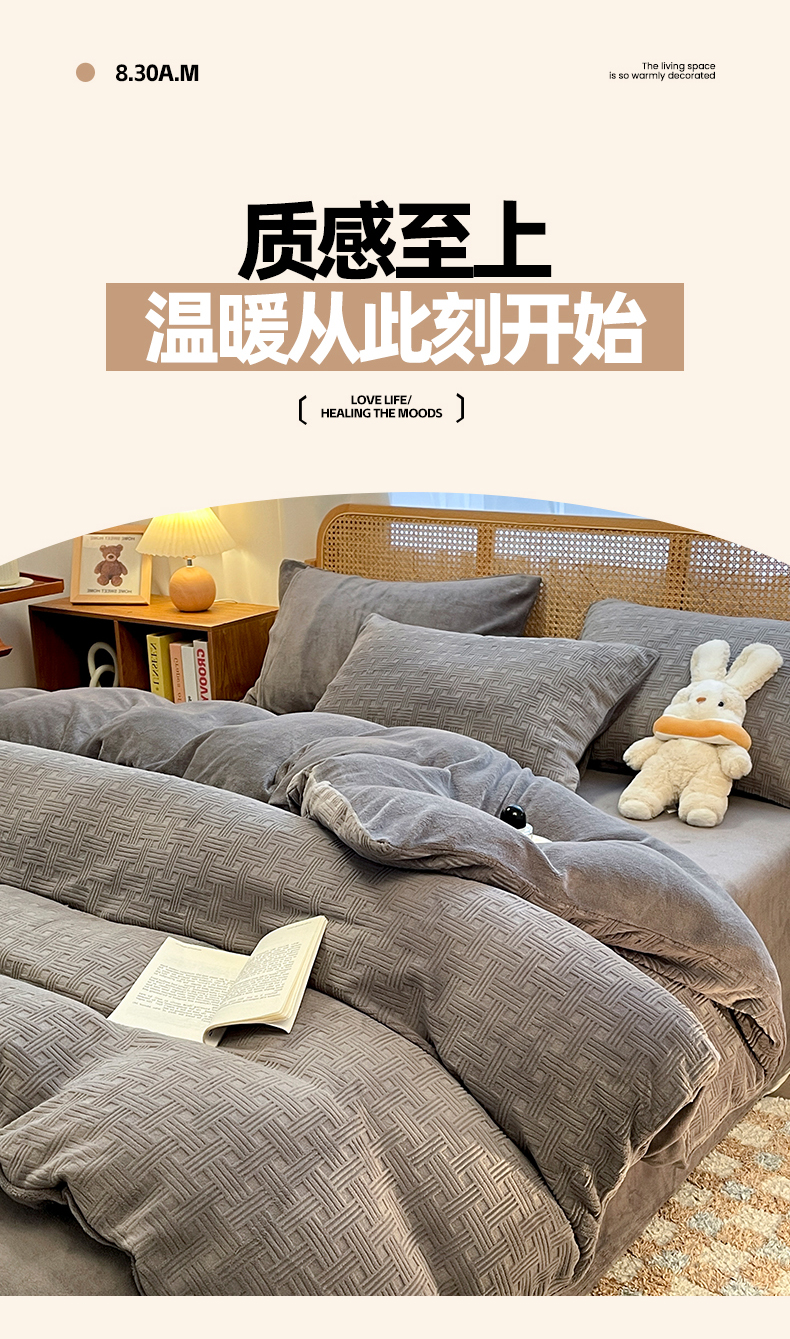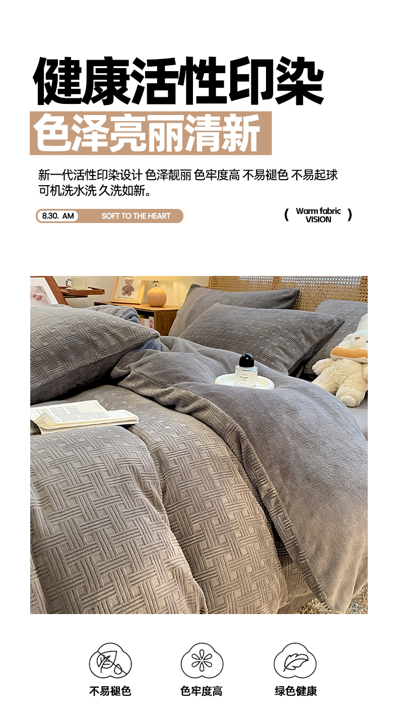 当前位置: 91家纺网 > 商品网购 > 床品套件 > 四件套 > 牛奶绒四件套 > 莱茵家居 2024新款A类高克重雕花牛奶绒四件套-糖果格 糖果格-深灰