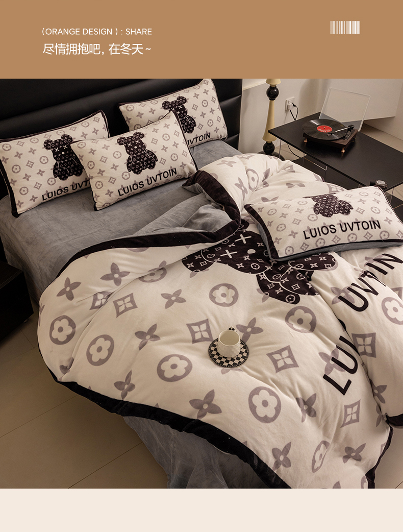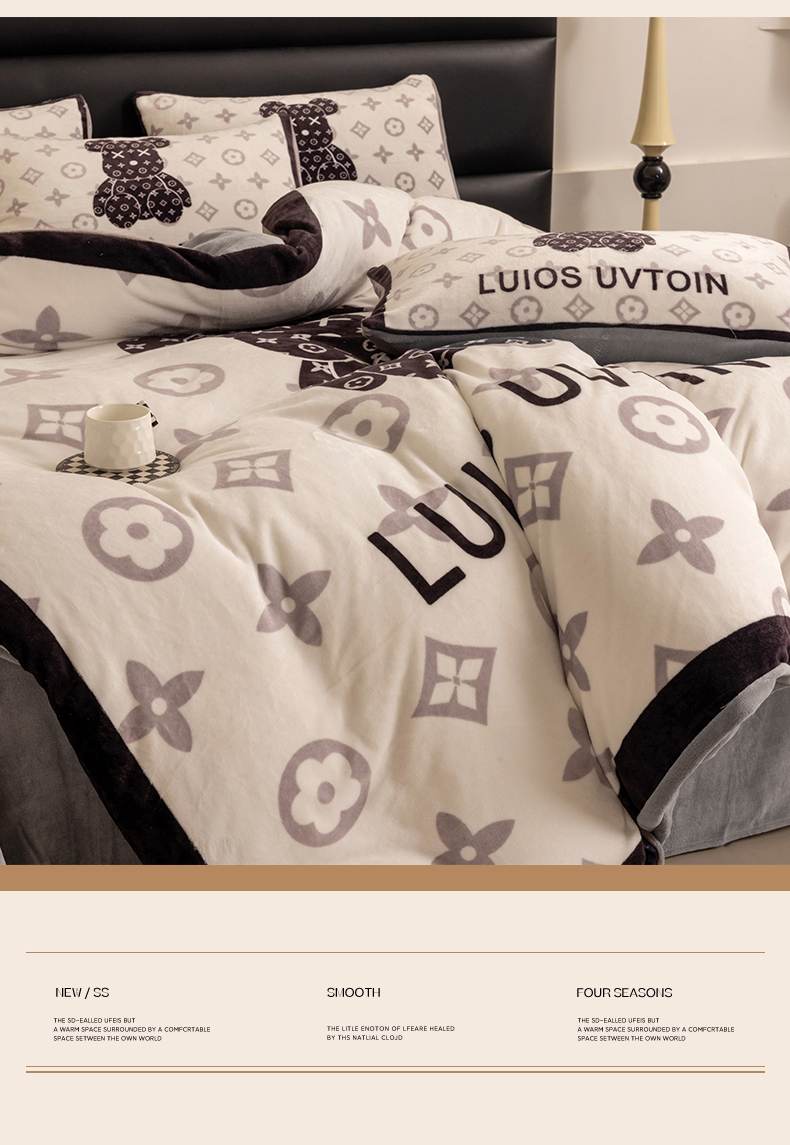 (总)摩卡(乐趣) 2024新款亲肤全棉网红轻奢四件套,H马,大H,粉红兔,黑白迪,黑白V,黑双C,咖古,咖色熊,蓝咖熊,毛绒熊,趴趴熊,七彩迪,小楂花,萌兔