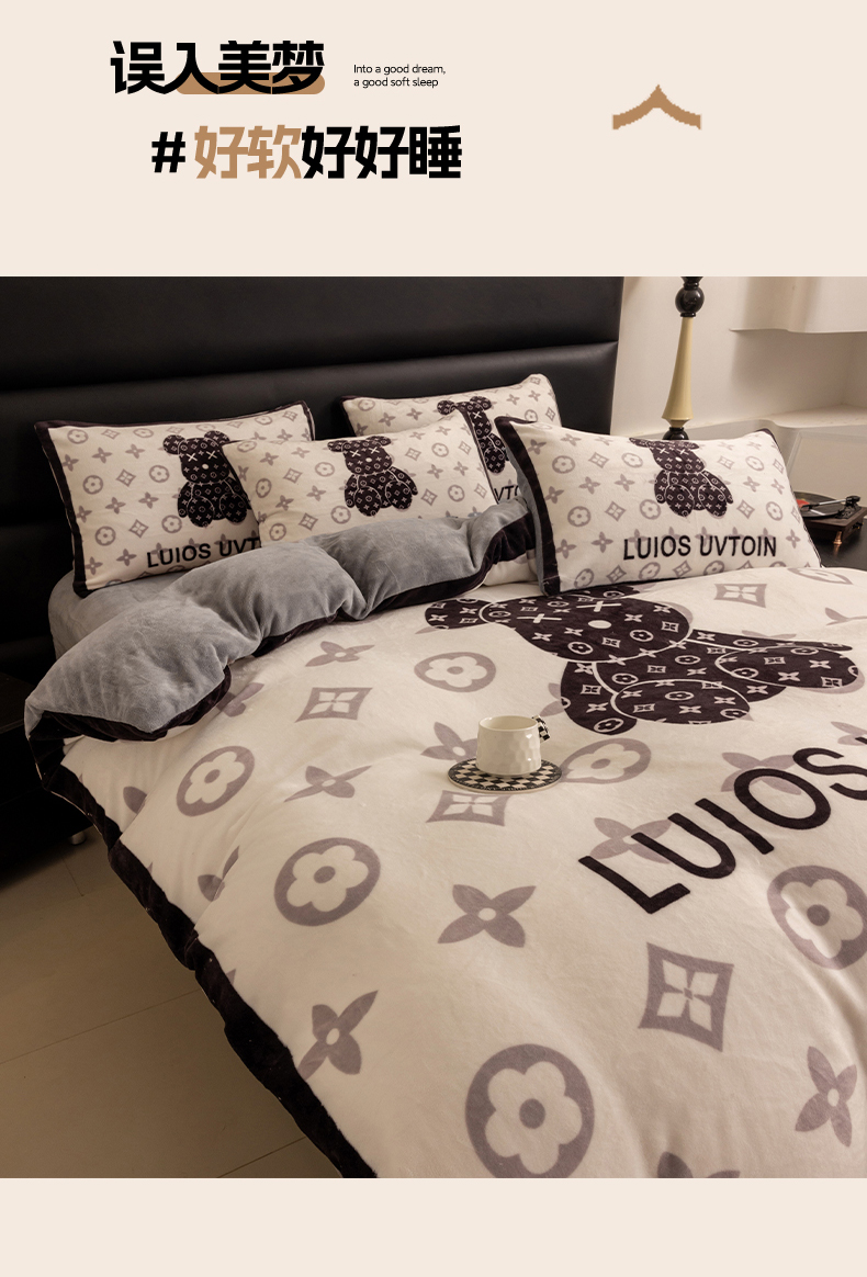 摩卡(乐趣) 2024新款高克重牛奶绒大版印花四件套 熊仔白