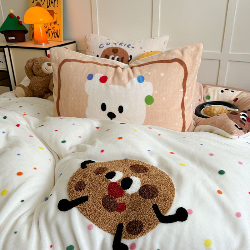 (总)柚子YOUTH 2025新款双面泰迪绒毛巾绣四件套,甜甜圈,快乐企鹅,森林聚会,甜酷KT,小茄子,雪人王国