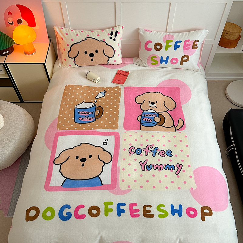 (总)桃喜 2025新款牛奶绒线条系列四件套 【会员-5】,黑白小狗,咖色线条狗勾