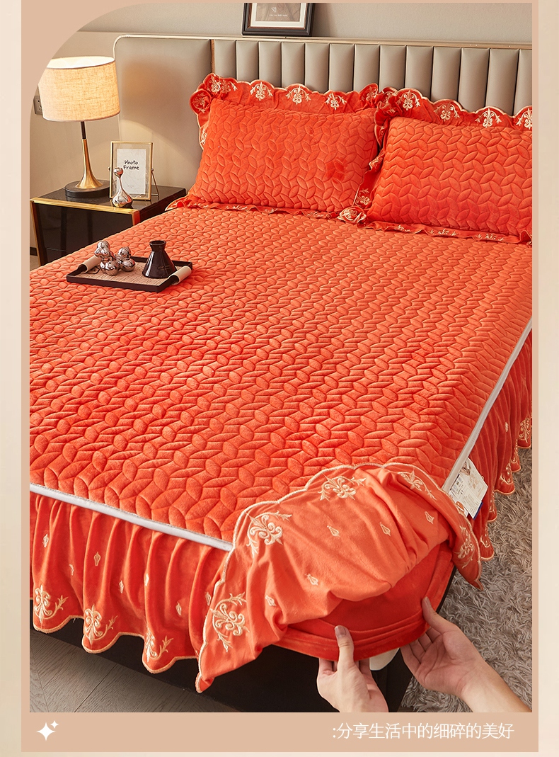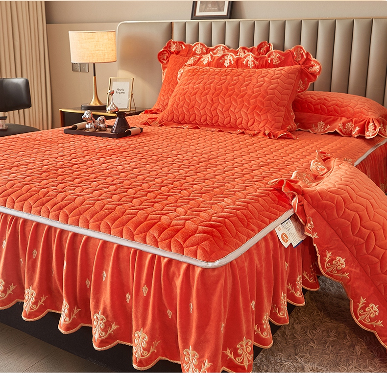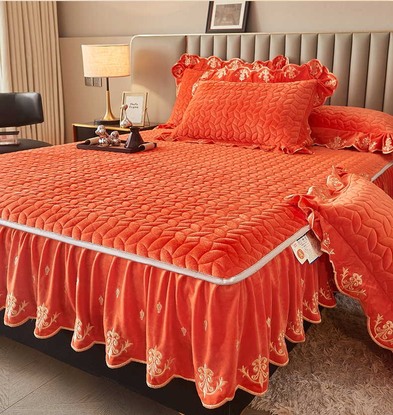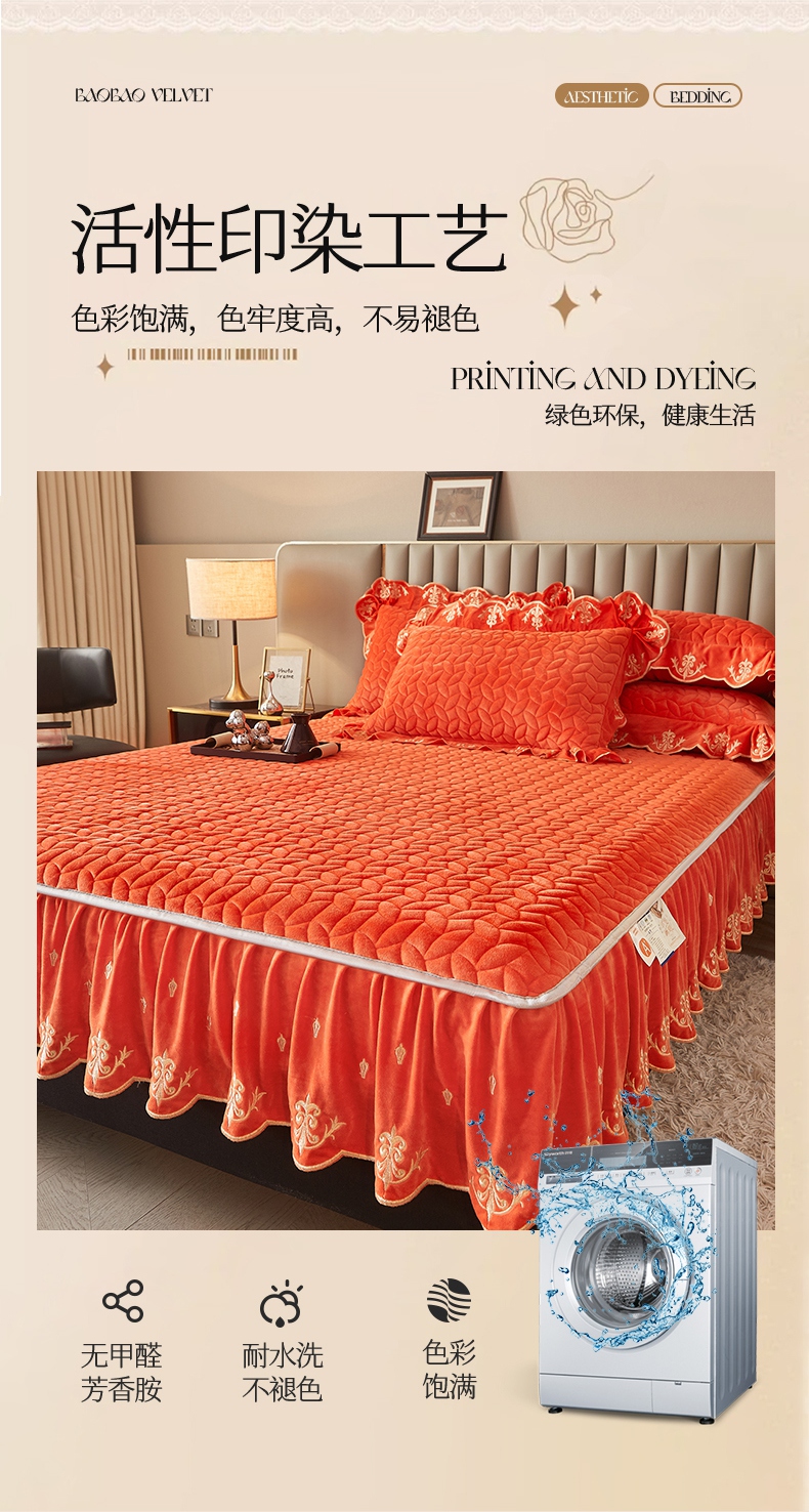 (总)恒爱 2022秋冬水晶绒翩翩花舞夹棉床裙四件套,大红色,豆沙红,橄榄绿,公主粉,桔色,咖啡色,孔雀绿,拉菲红,罗兰紫,玫红色,美人玉,米白色,米驼色,抹茶绿,浅灰色,紫色