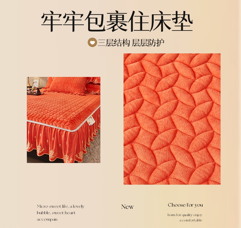 (总)恒爱 2022秋冬水晶绒翩翩花舞夹棉单床裙,大红色,豆沙红,橄榄绿,公主粉,桔色,咖啡色,孔雀绿,拉菲红,罗兰紫,玫红色,美人玉,米白色,米驼色,抹茶绿,浅灰色,紫色