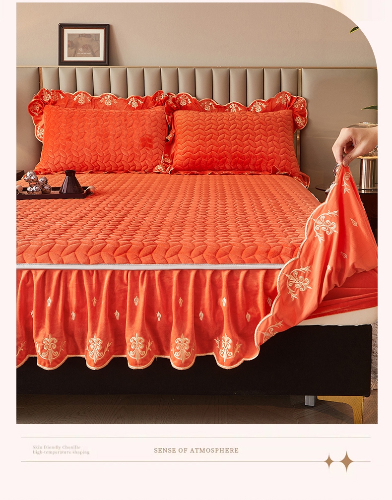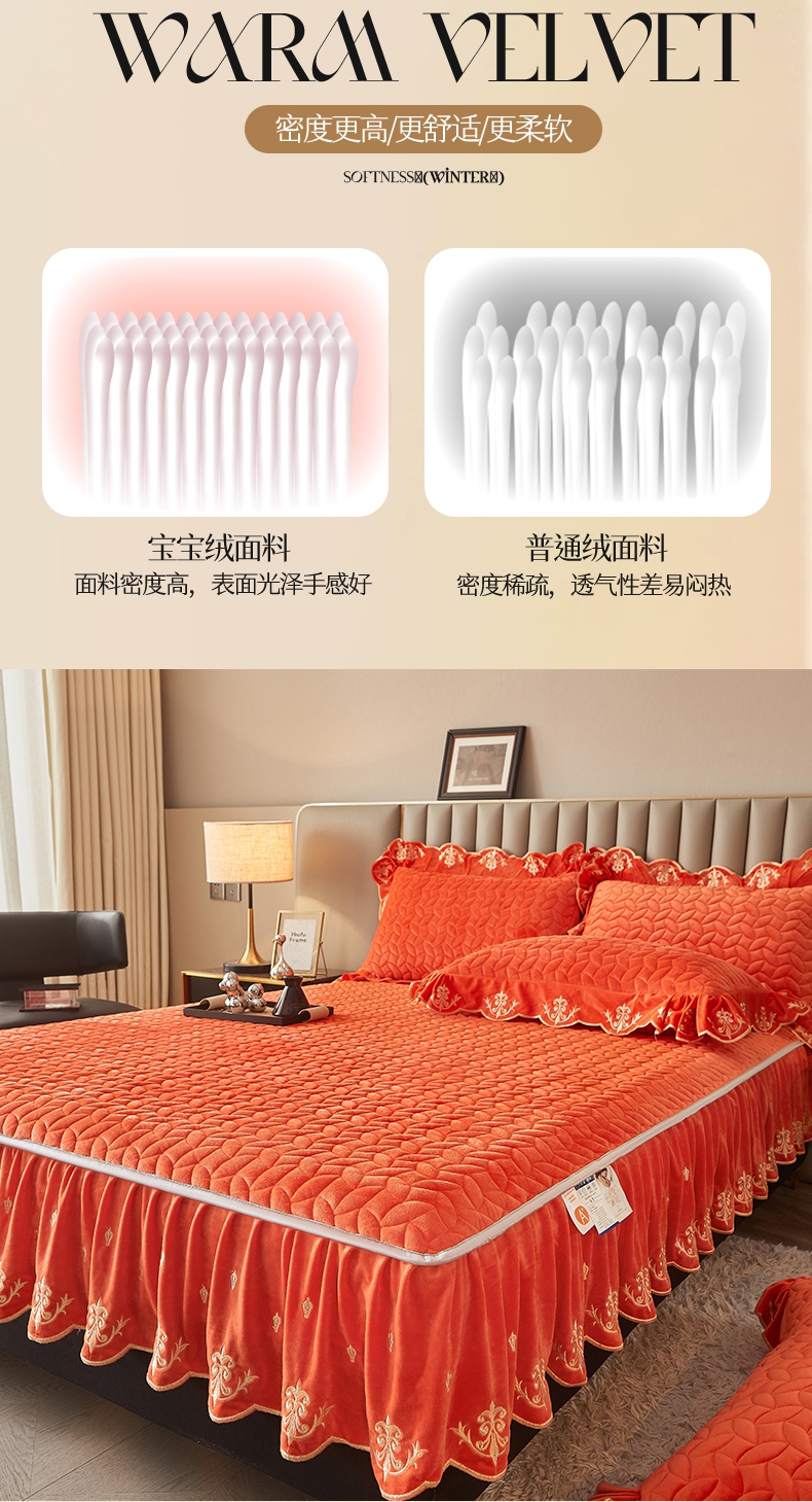 (总)恒爱 2022新款秋冬轻奢宝宝绒刺绣单床裙,爱玛橙,宾利蓝,豆沙红,橄榄绿,高级灰,酒红,梦想粉,浅灰蓝,温馨粉,喜庆红,香妃粉,香芋紫
