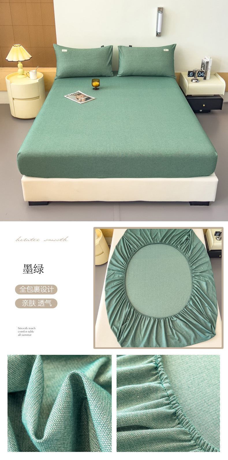 商品名称:2024新款色织提花磨毛床笠三件套 墨绿