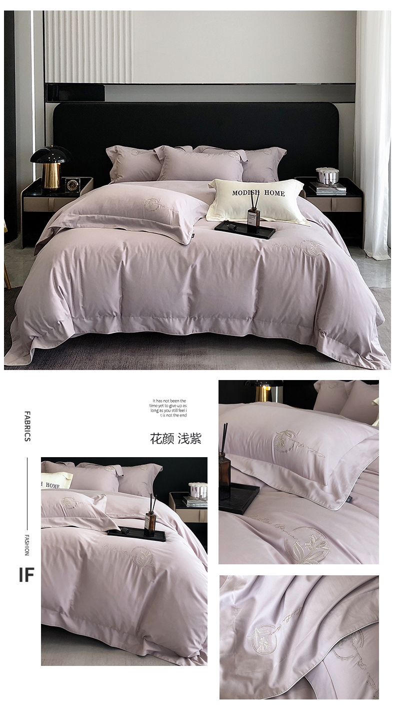 商品名称:诗黛尔 2024秋冬新款长绒棉磨毛刺绣花颜系列四件套 花颜浅紫