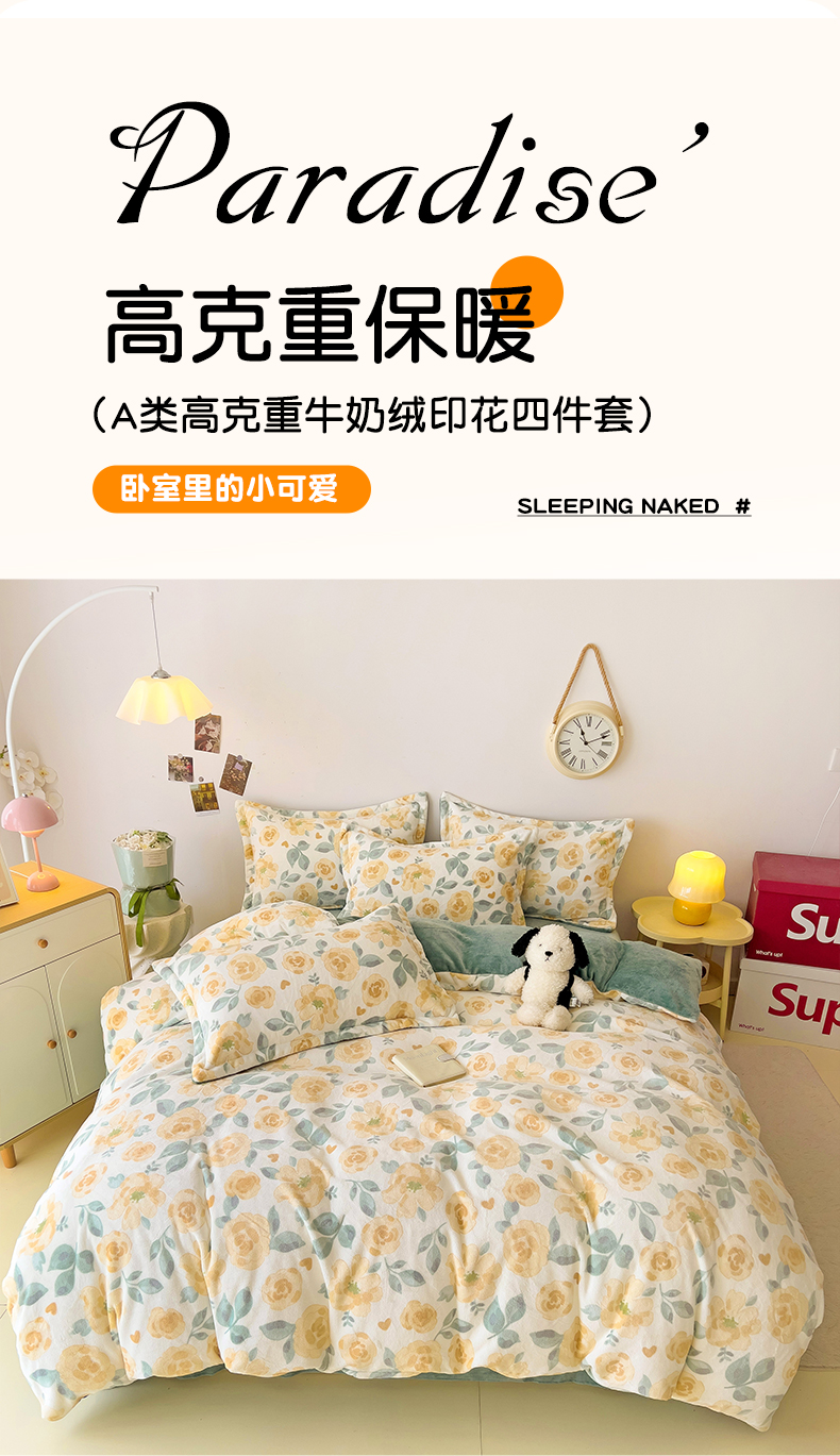 当前位置: 91家纺网 > 商品网购 > 床品套件 > 四件套 > 牛奶绒四件套 > 大柏树 2025新款A类高克重亲肤舒适牛奶绒印花四件套-四件套可定制 朵柔-黄