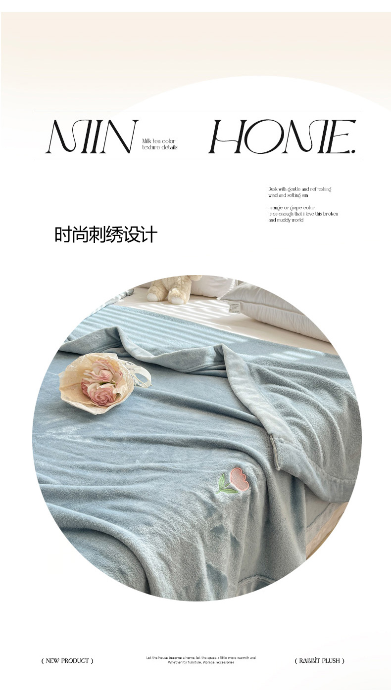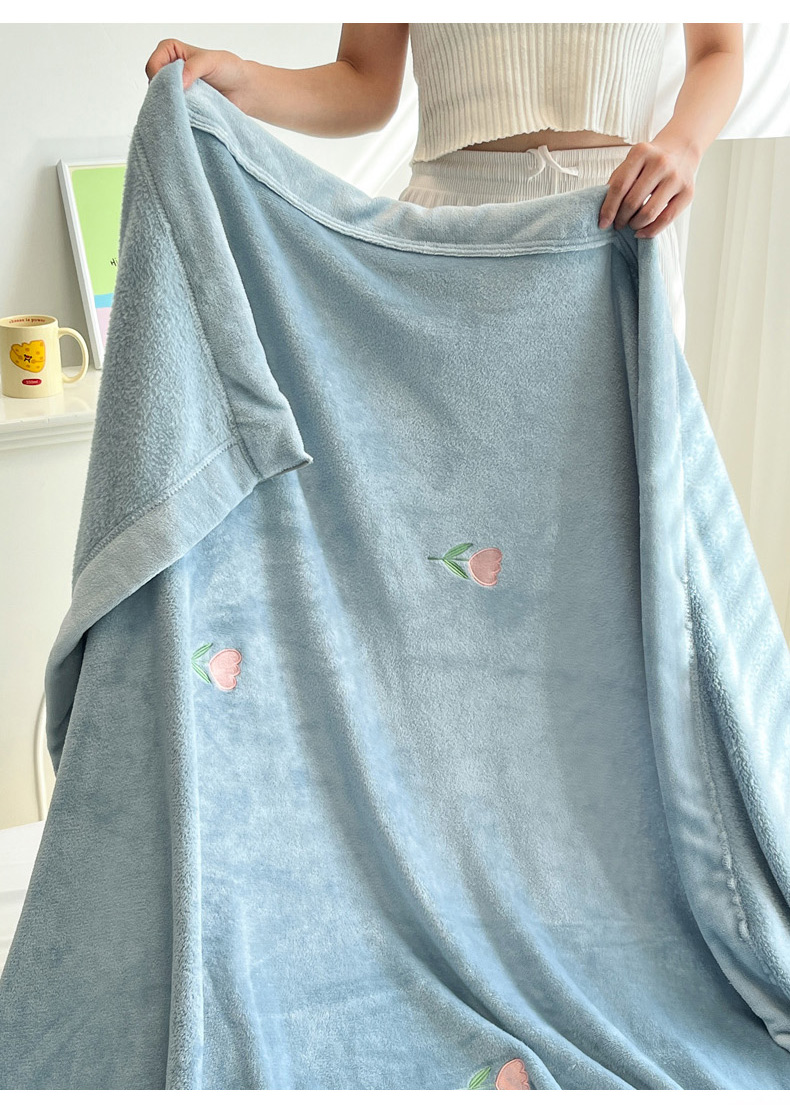 商品名称:慕尚 2025新款简约双面牛奶绒刺绣多功能盖毯-郁金香 郁金香-蓝