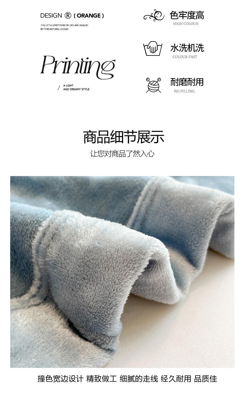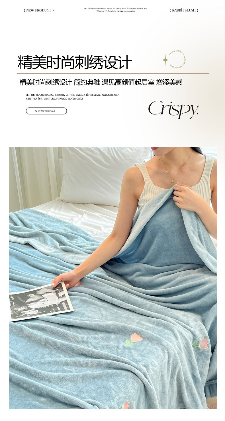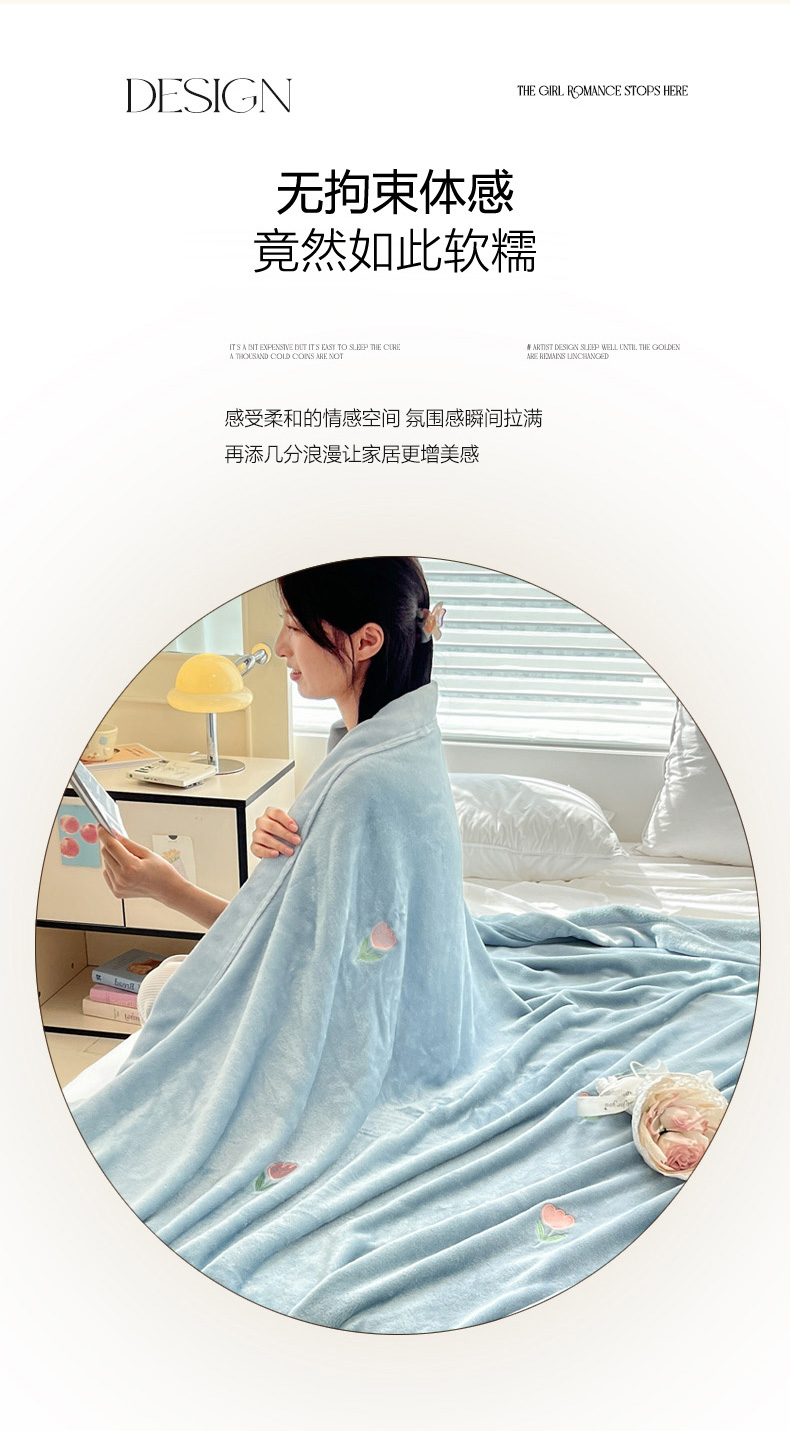 慕尚 2025新款简约双面牛奶绒刺绣多功能盖毯-郁金香 郁金香-蓝