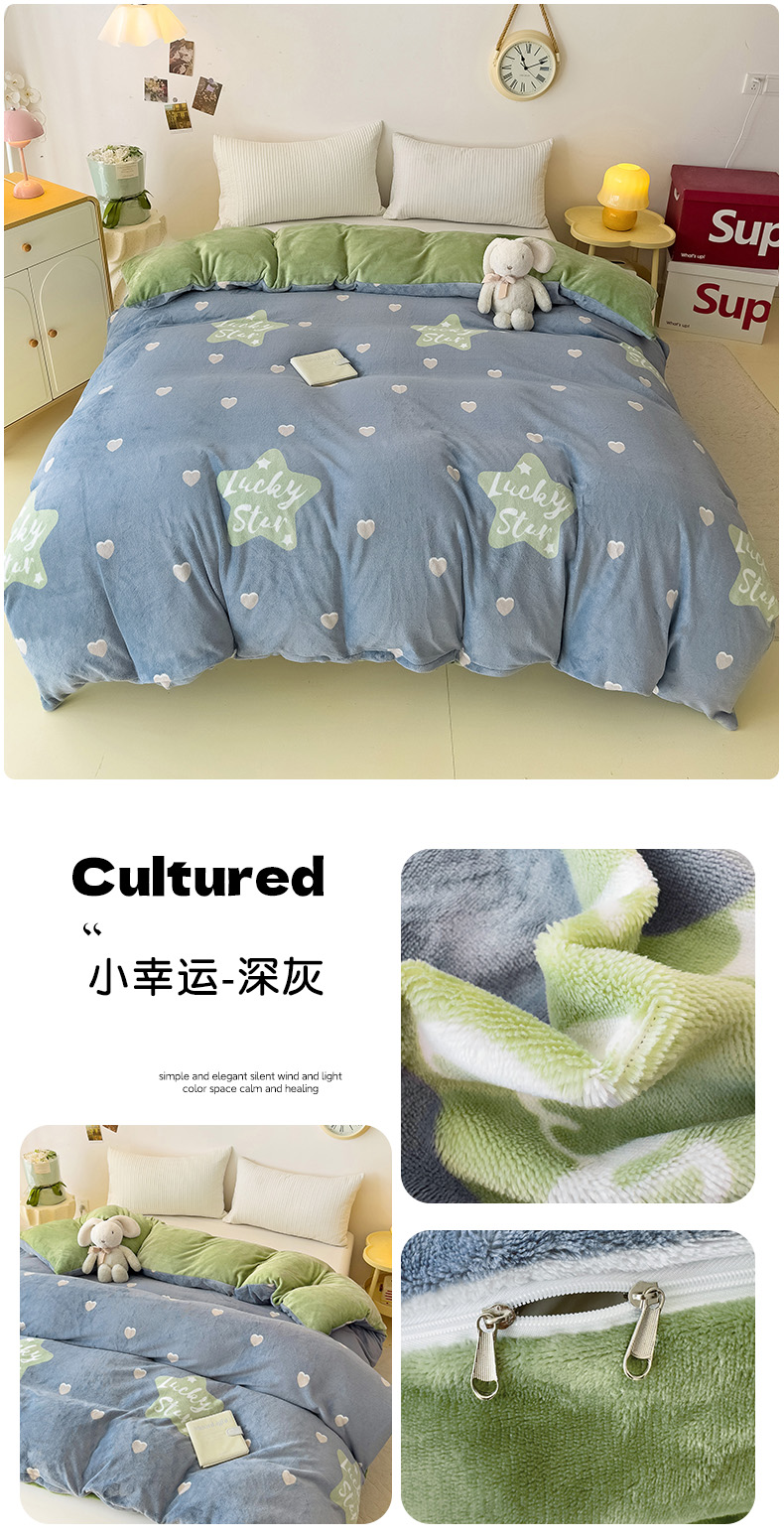 大柏树 2025新款A类高克重亲肤舒适牛奶绒印花四件套-单被套可定制 小幸运-深灰