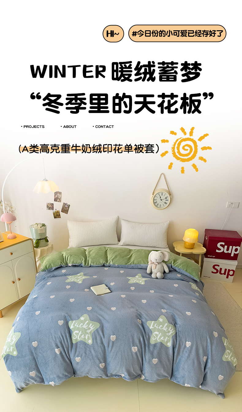 当前位置: 91家纺网 > 商品网购 > 床上用品 > 被套 > 大柏树 2025新款A类高克重亲肤舒适牛奶绒印花四件套-单被套可定制 小幸运-深灰