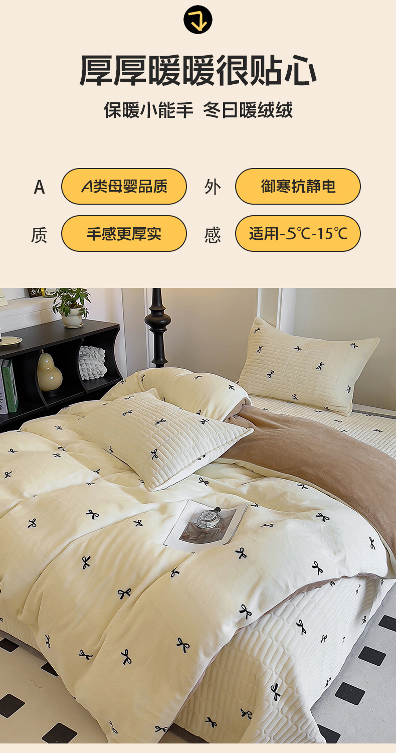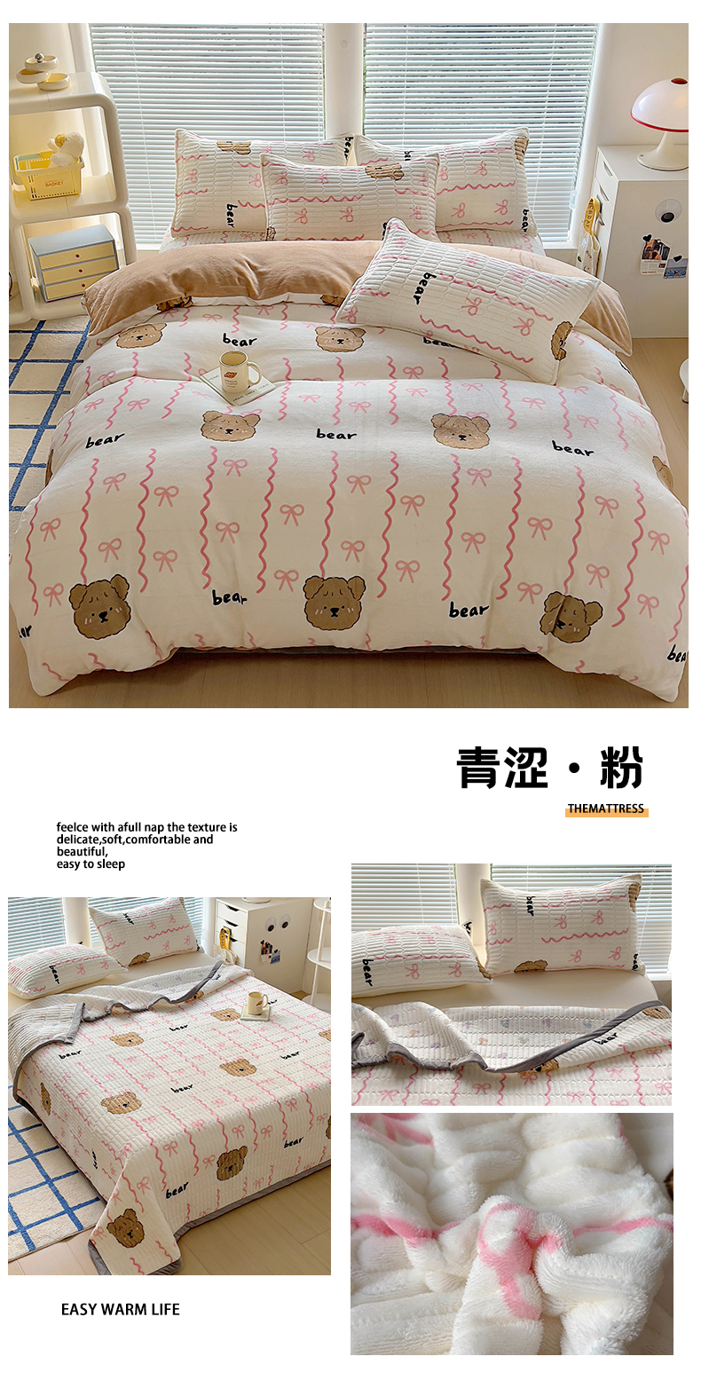 商品名称:美梦家纺 2024新款牛奶绒简单款夹棉床盖三件套 青涩粉