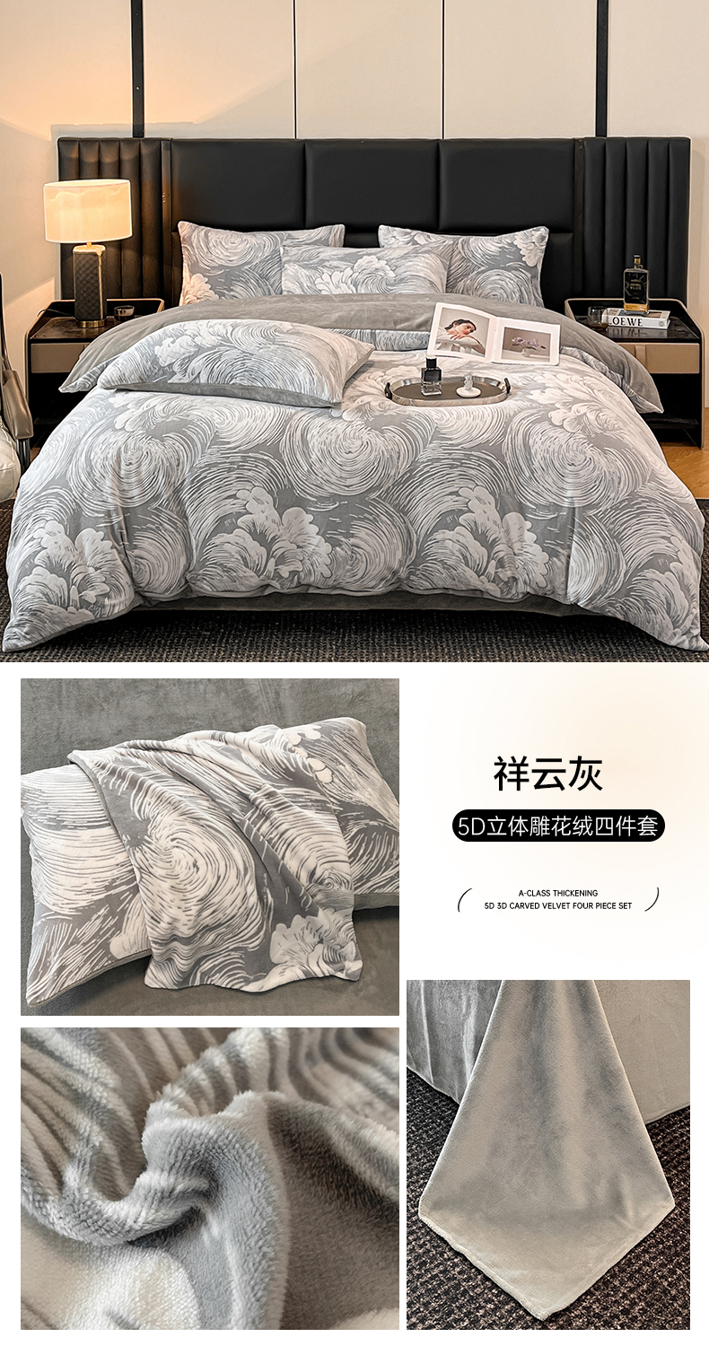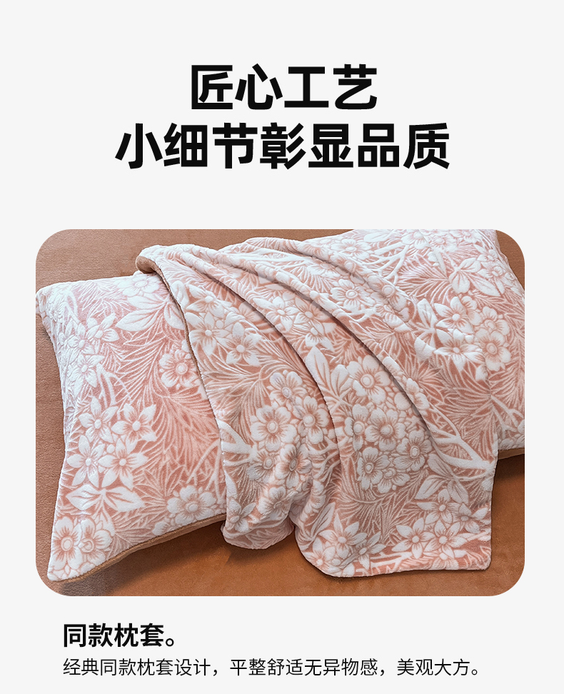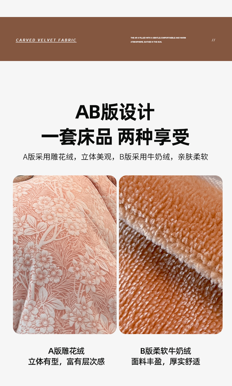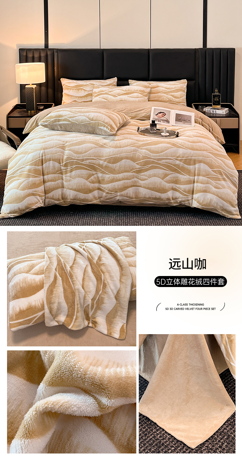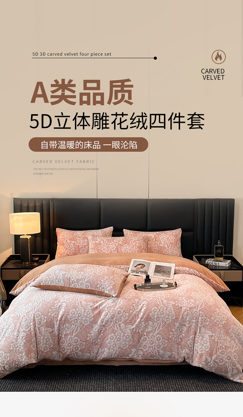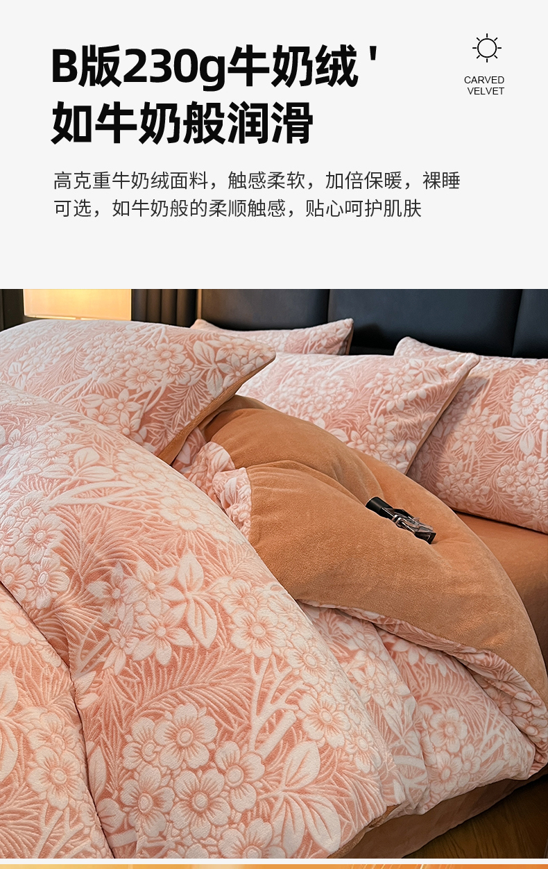 商品名称:玉海棠家纺 2024新款5D立体雕花绒四件套 繁花奶桔