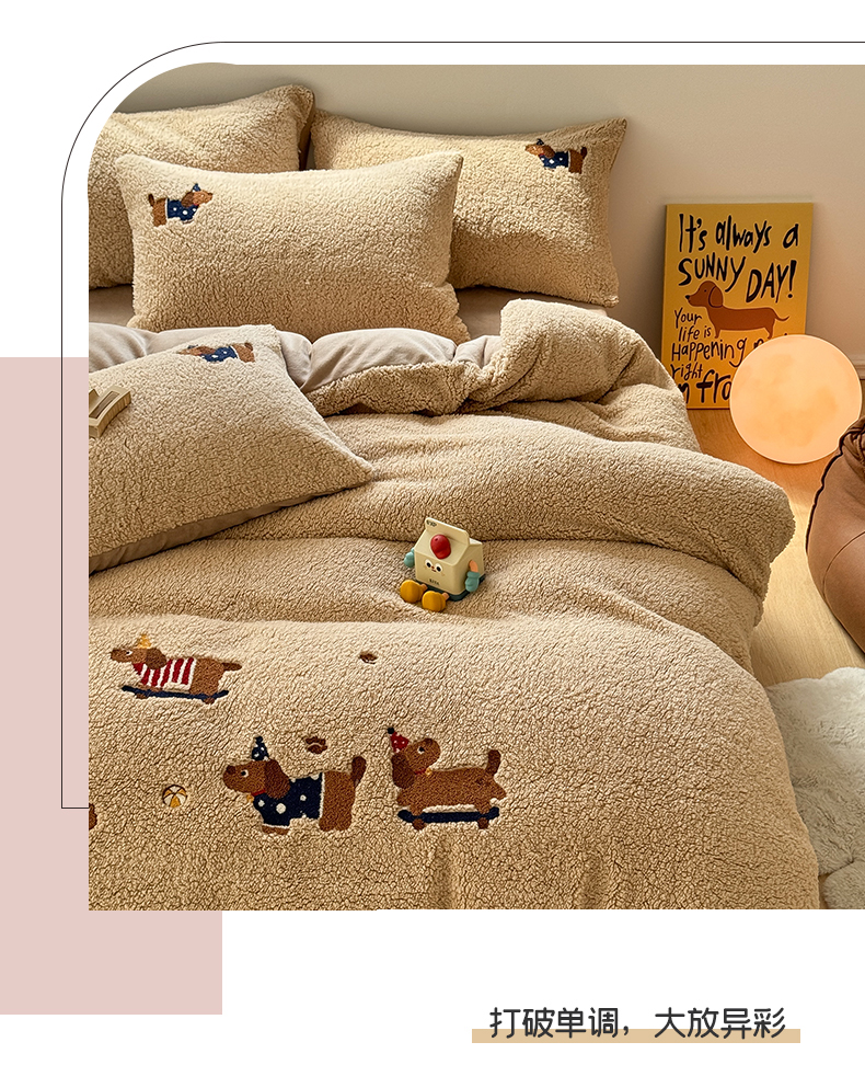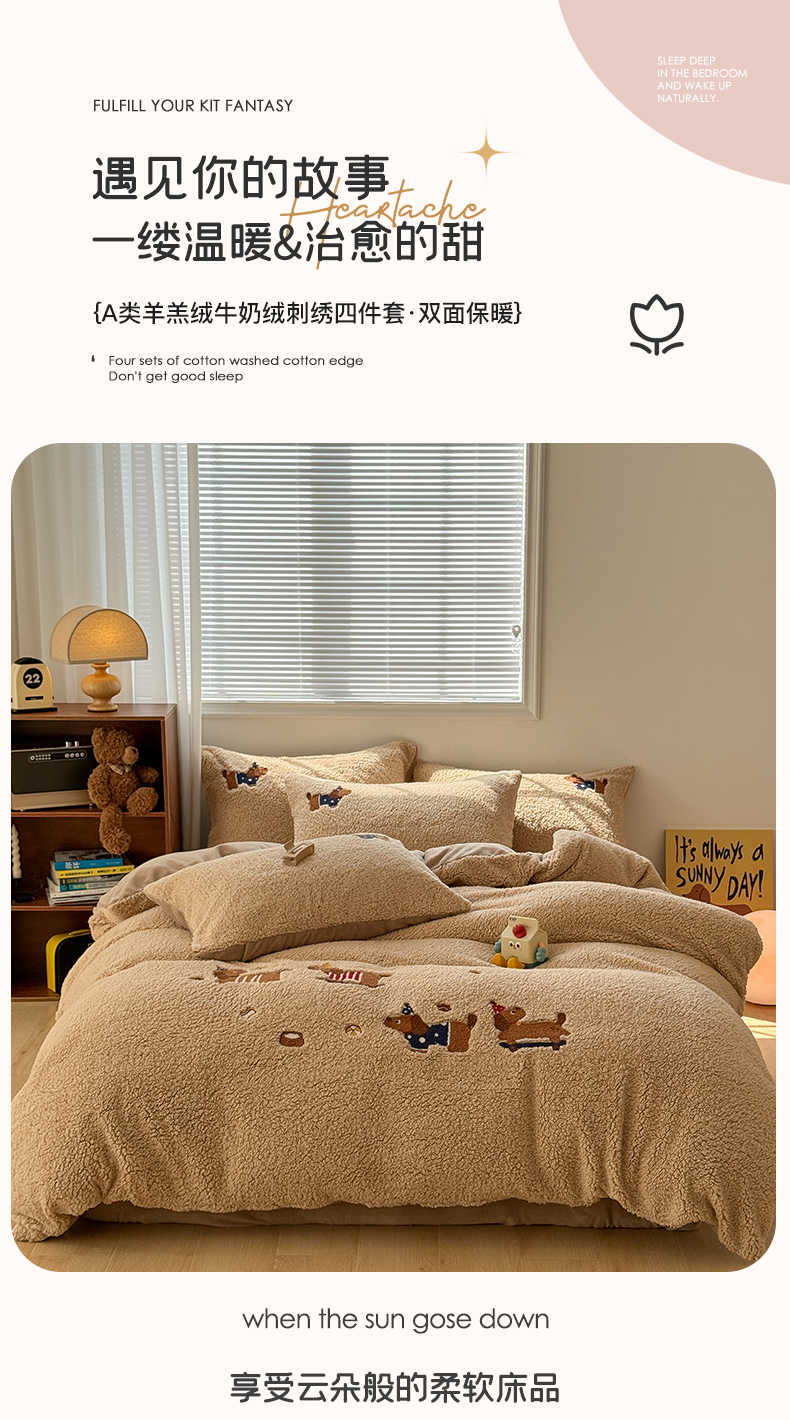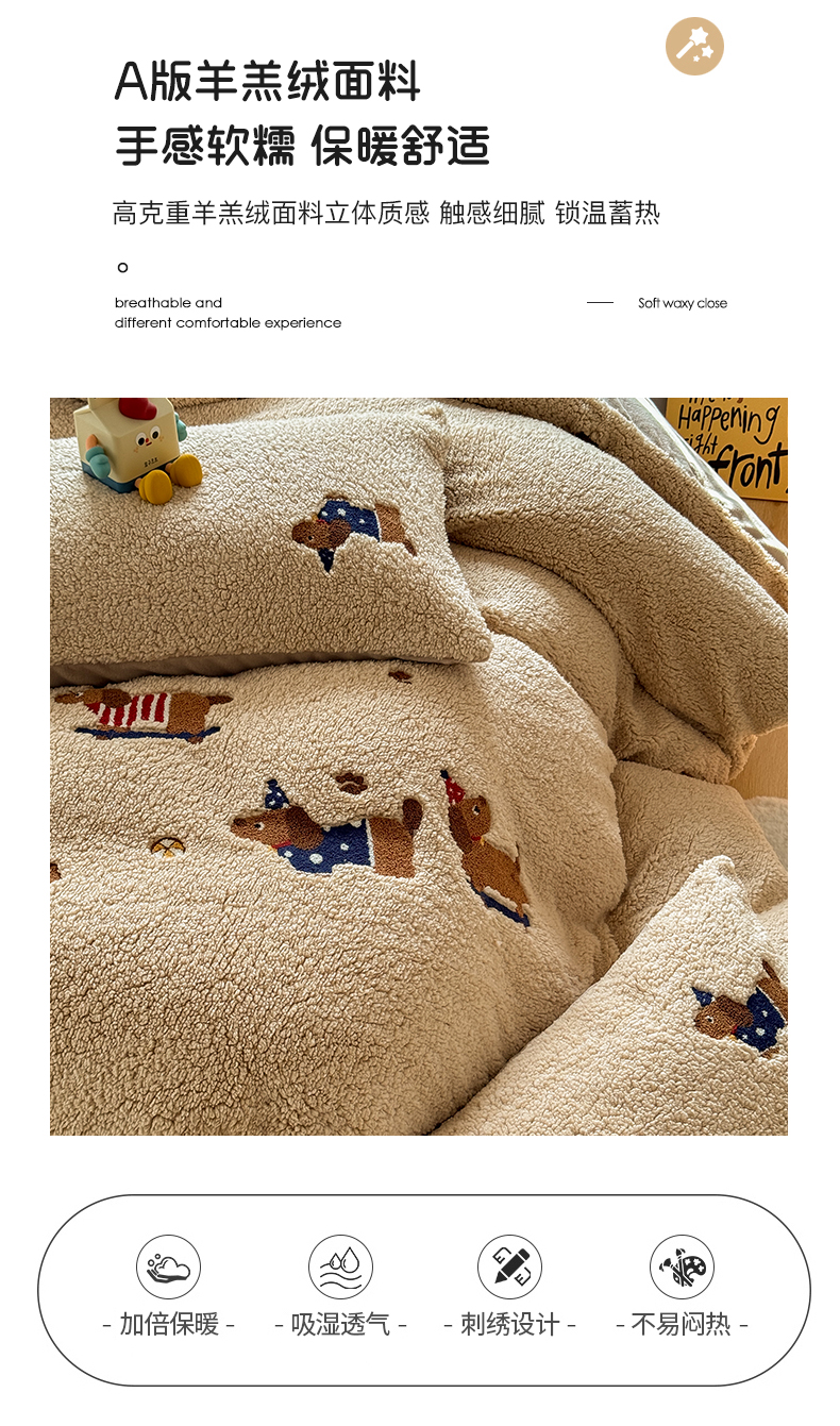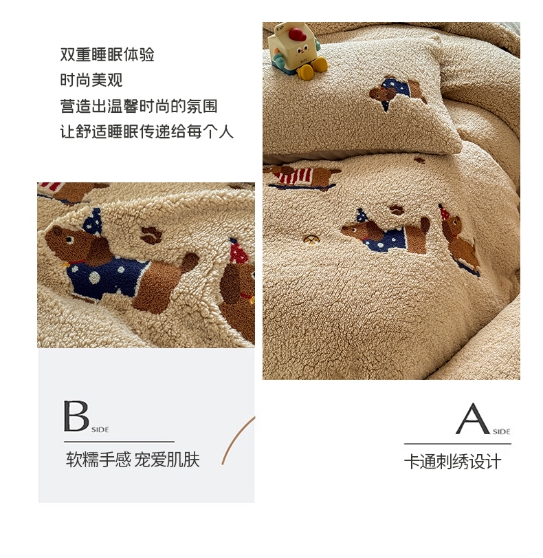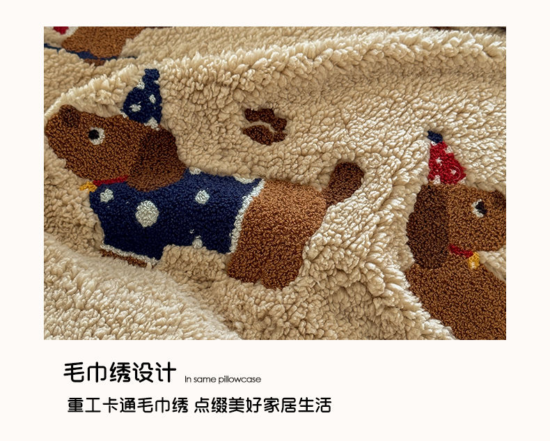 商品名称:TT.one 塔塔家居 2025新款暖绵绵羊羔绒毛巾绣四件套 小狗游园会