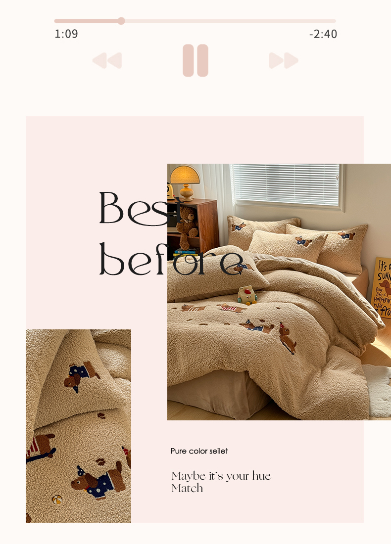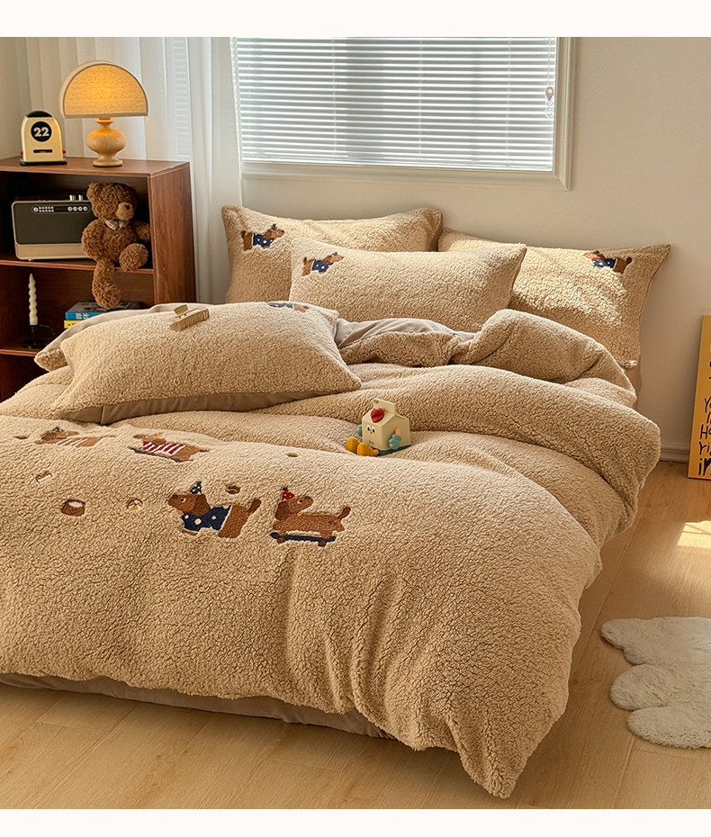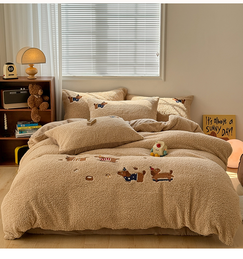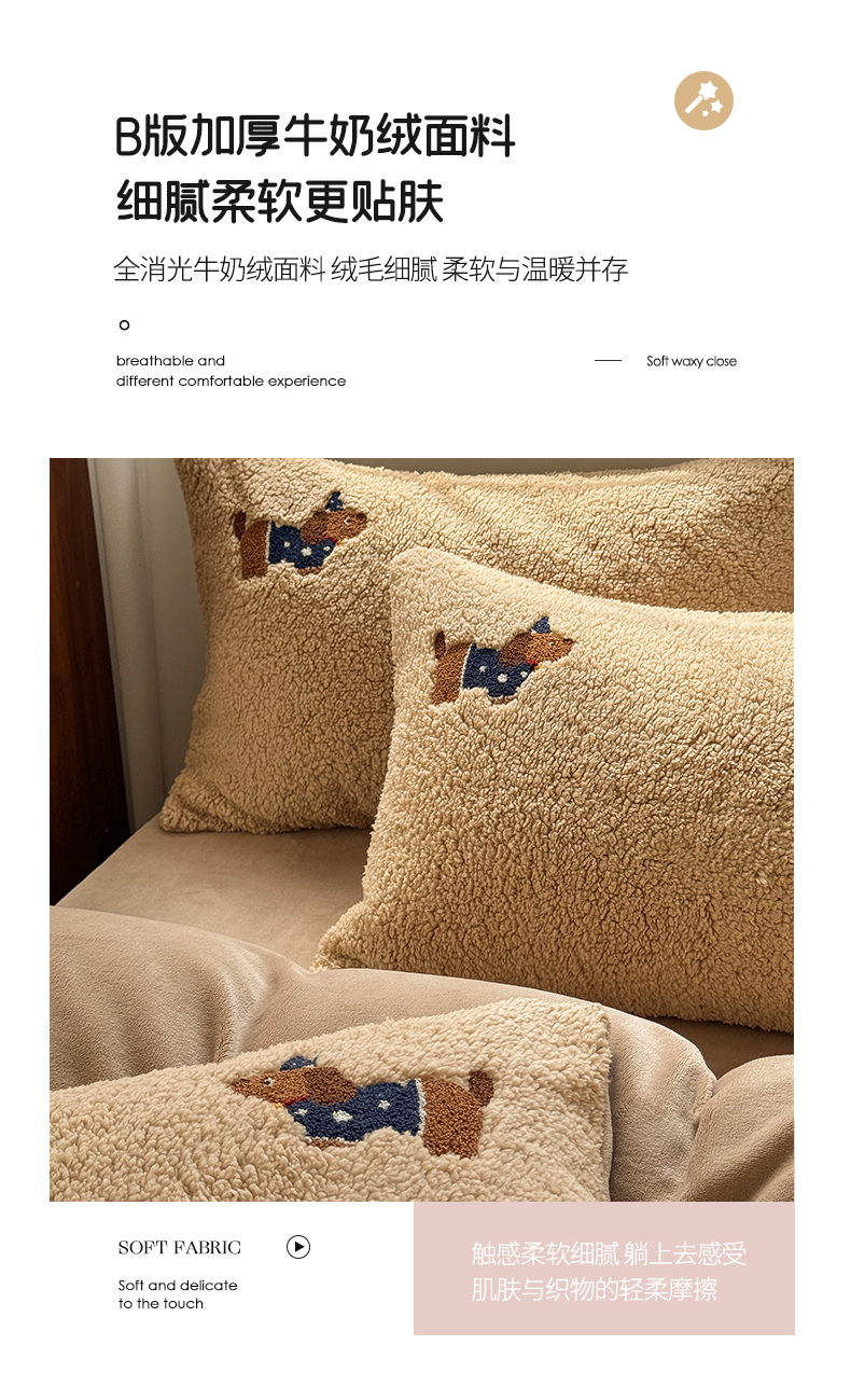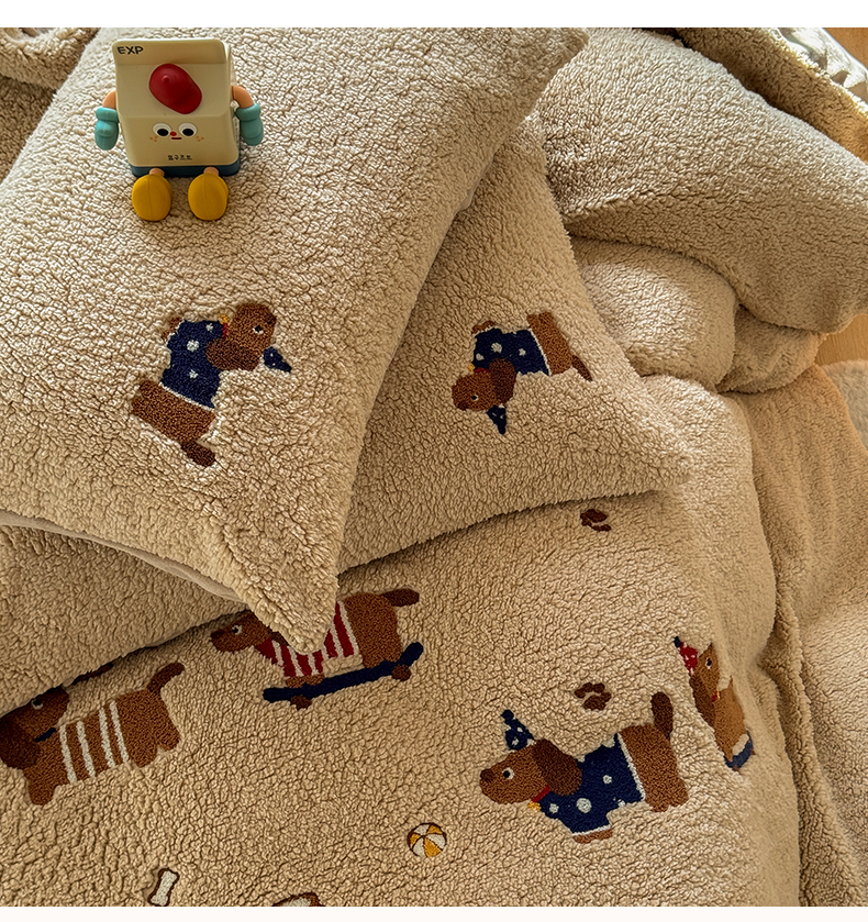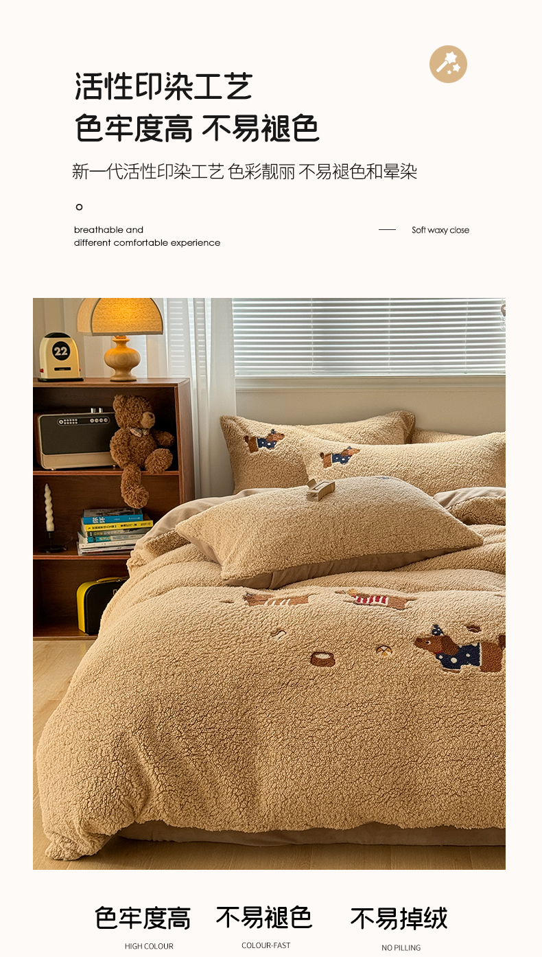 商品名称:TT.one 塔塔家居 2025新款暖绵绵羊羔绒毛巾绣四件套 小狗游园会