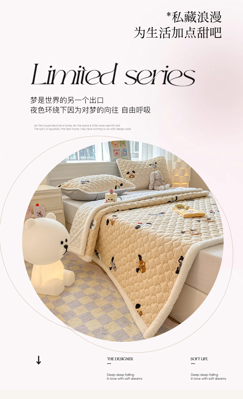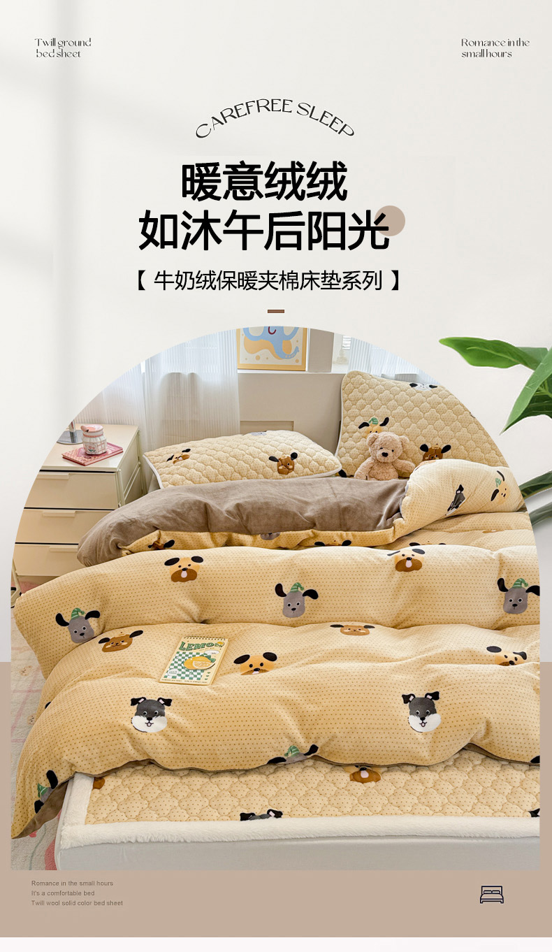 当前位置: 91家纺网 > 商品网购 > 床品套件 > 四件套 > 其它四件套 > 慕尚家纺 2025牛奶绒床盖床褥被套三件套四件套 床垫-开心狗