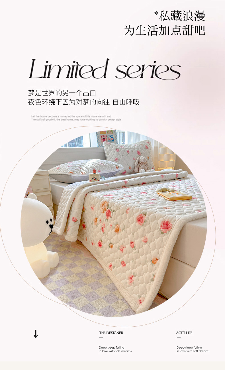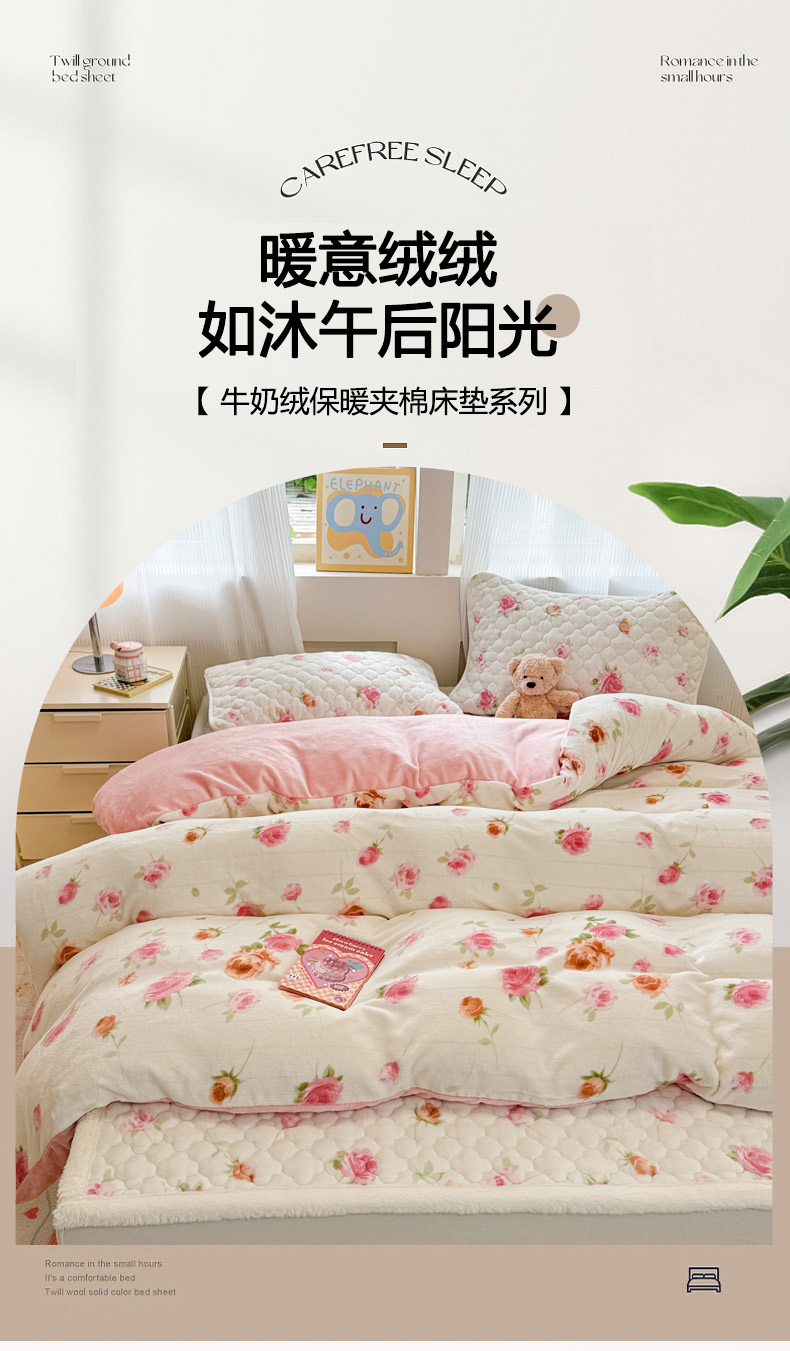 当前位置: 91家纺网 > 商品网购 > 床品套件 > 四件套 > 其它四件套 > 慕尚家纺 2025牛奶绒床盖床褥被套三件套四件套 床垫-甜美冬日