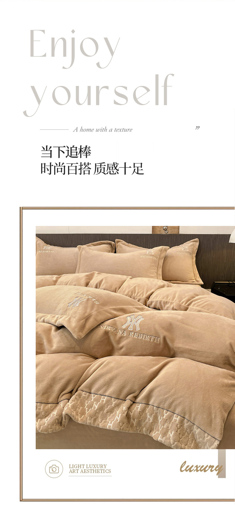 (总)星尚家纺 2024全消光A类230g牛奶绒绣花保暖绒四件套-豹纹,卡其色,奶昔白,时尚灰,芝芝粉