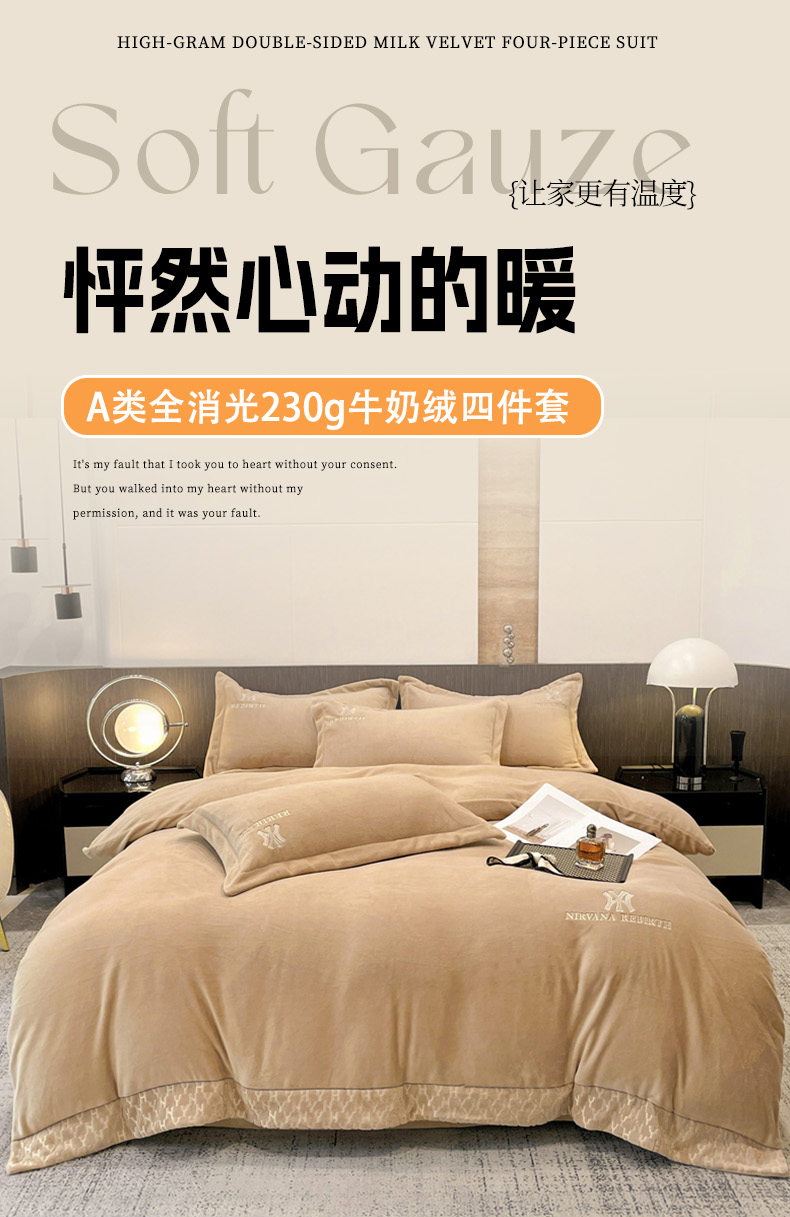 星尚家纺 2024新款全消光A类230g牛奶绒四件套-维也纳 卡其棕
