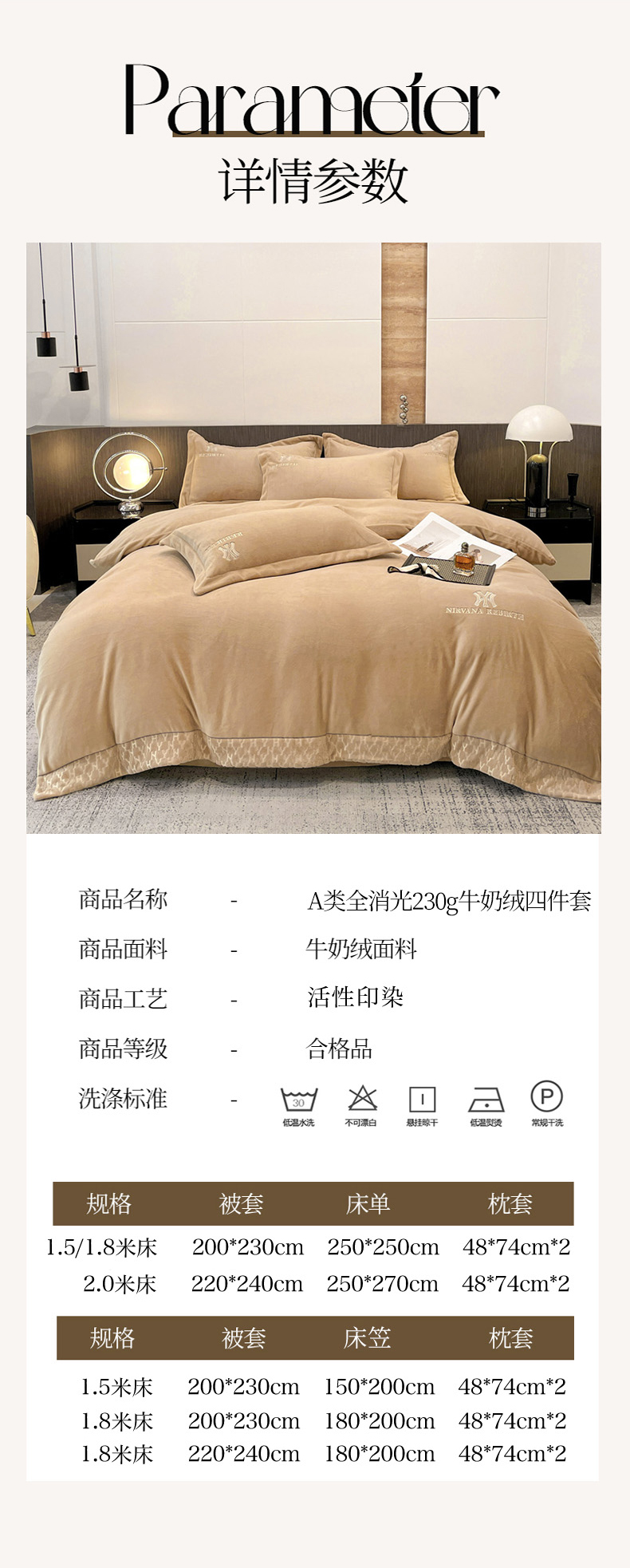 商品名称:星尚家纺 2024新款全消光A类230g牛奶绒四件套-维也纳 卡其棕