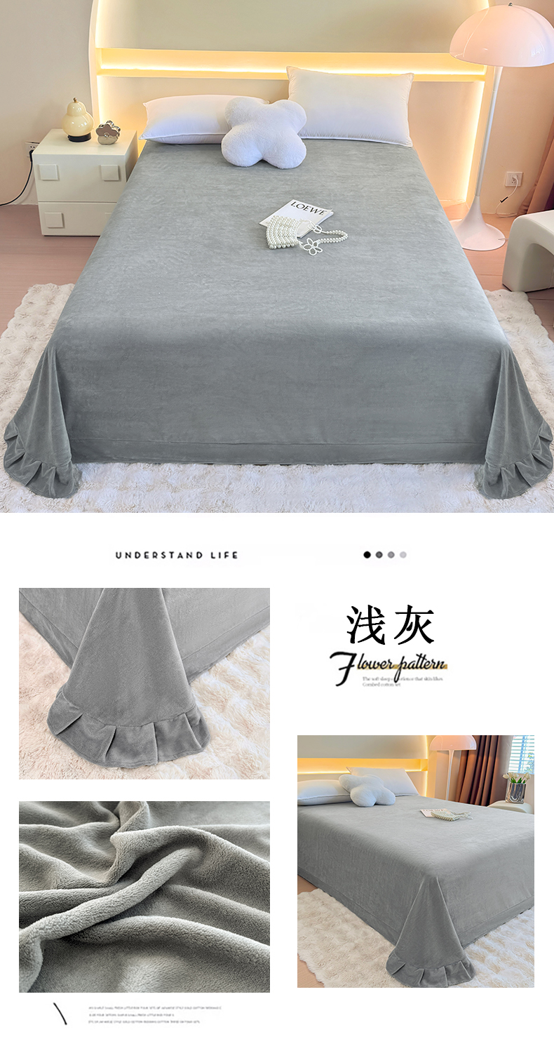 金盛纺 2024新款牛奶绒纯色单床单 浅灰