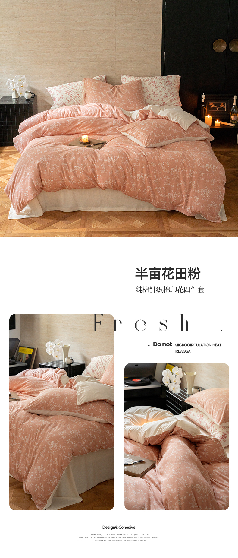 当前位置: 91家纺网 > 商品网购 > 床品套件 > 四件套 > 全棉普通四件套 > 华超针织 2024新款全棉天竺棉印花四件套系列 半亩花田粉