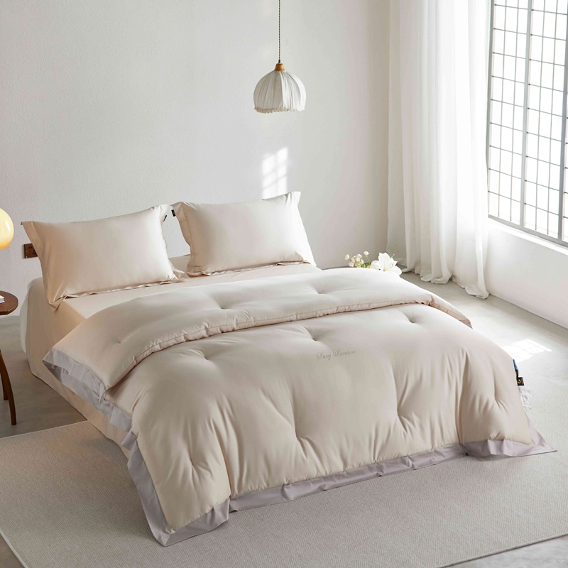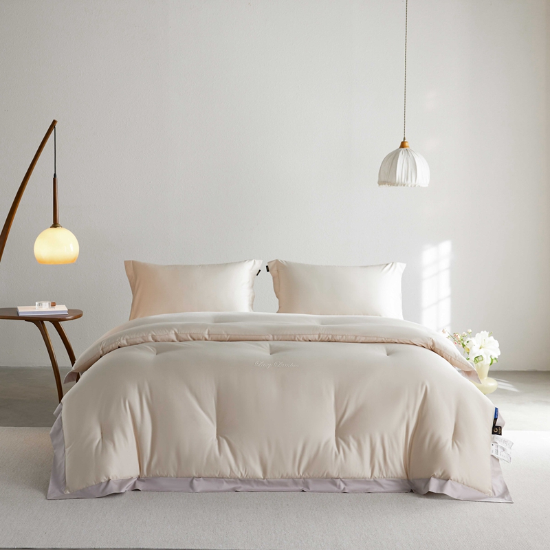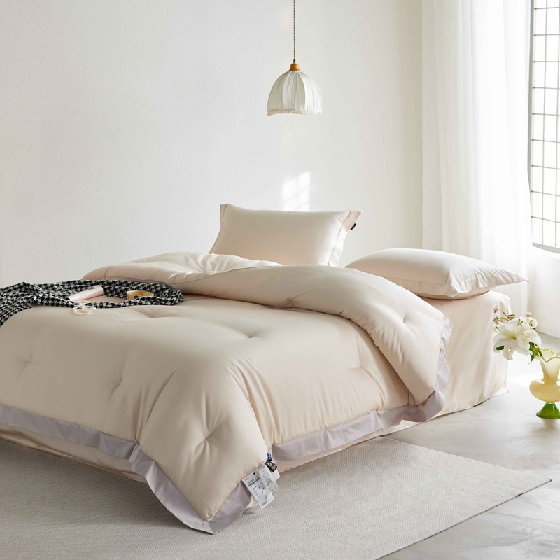 • 91家纺网 家纺一手货源 找家纺 丽笙 2024新款100S长绒棉纯棉懒宝儿宽边款四季被被子被芯 喀纳斯金