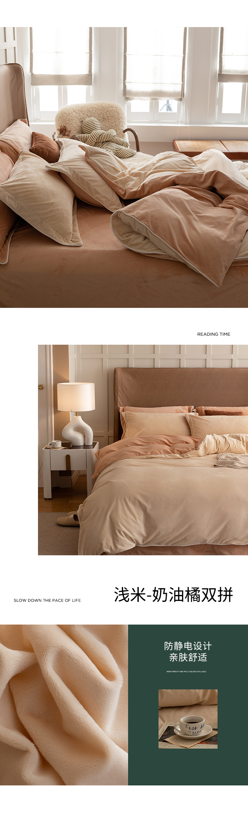 (总)万盛家纺 2025新款230克全消光牛奶绒拼色四件套,灰兰-星暖咖,简昔绿-星暖咖,奶白-抹茶绿,星暖咖-烟灰,星柚粉-星暖咖,烟灰-星柚粉