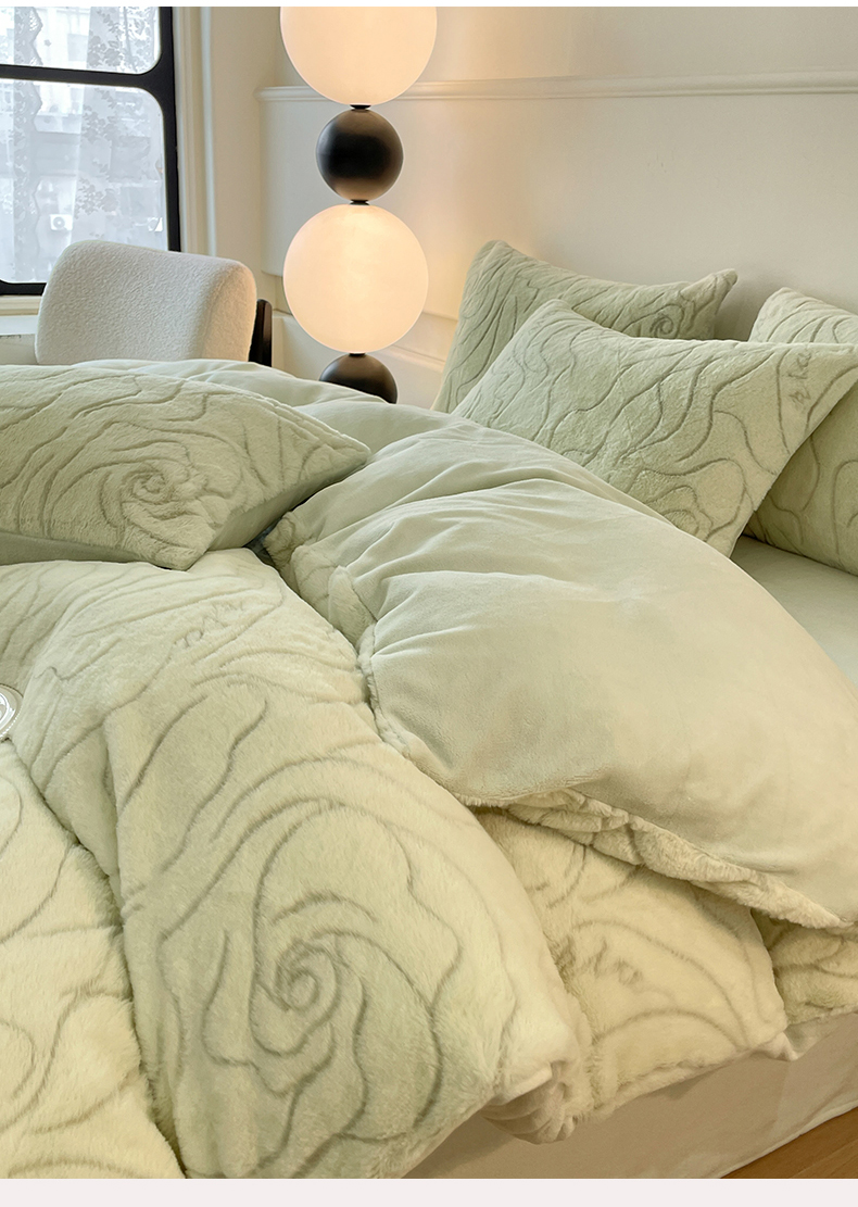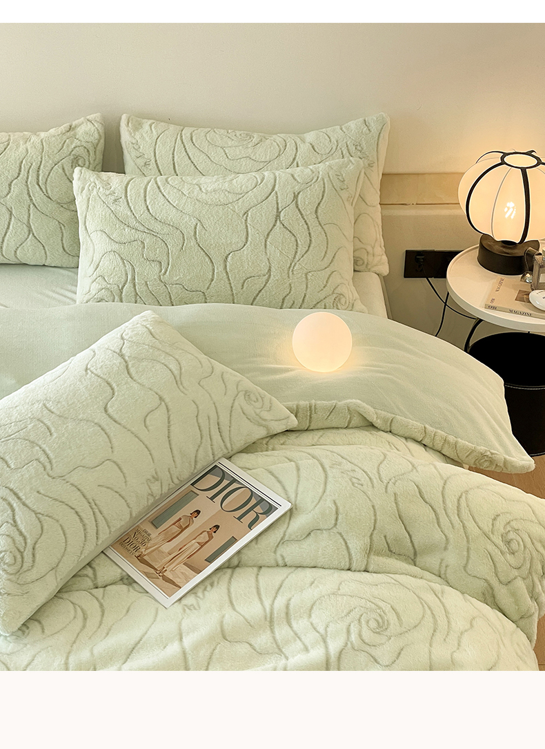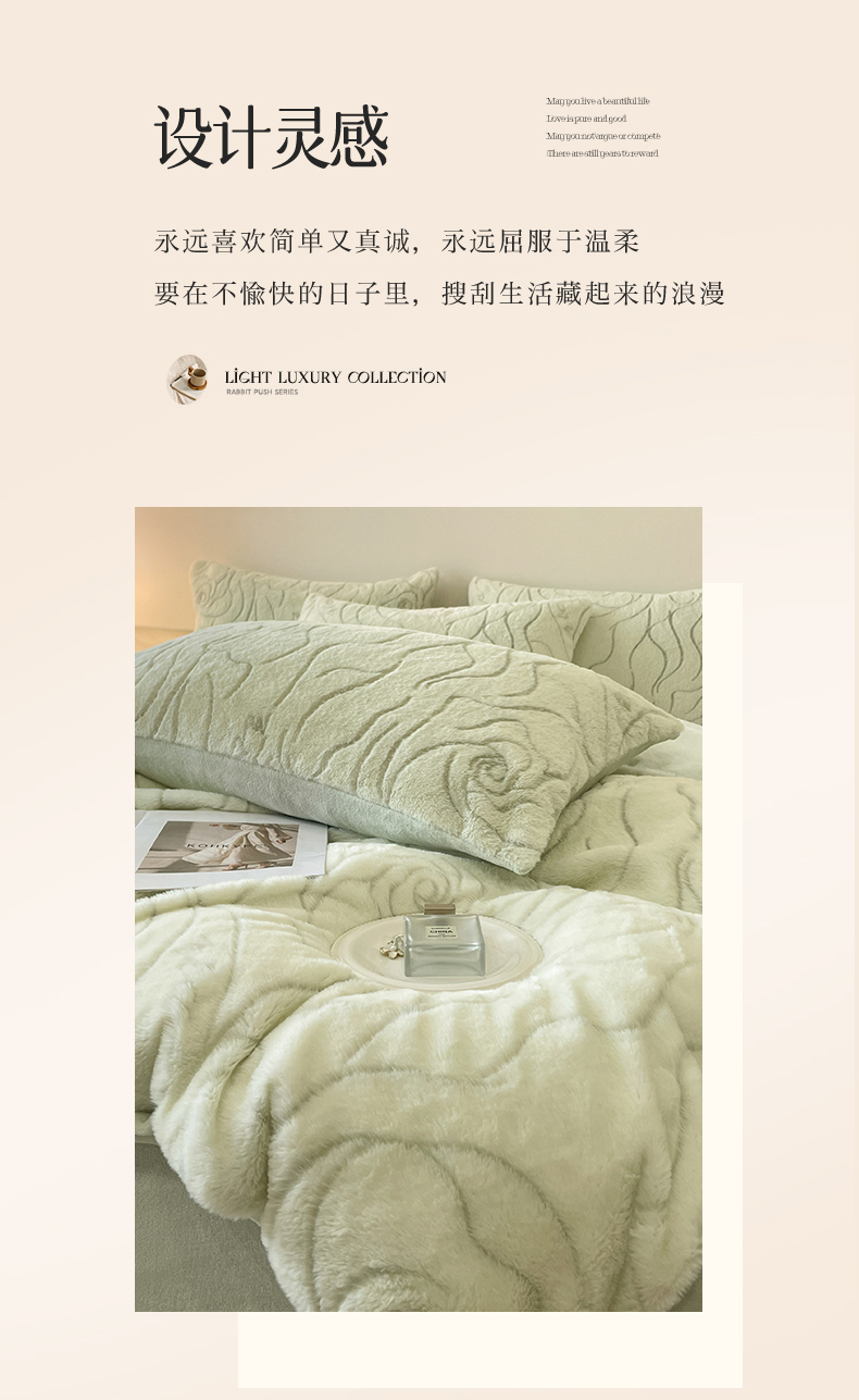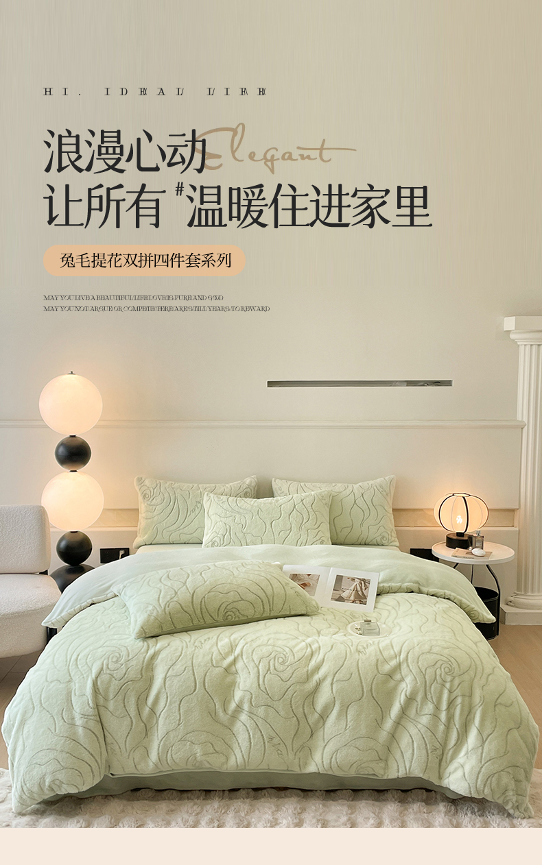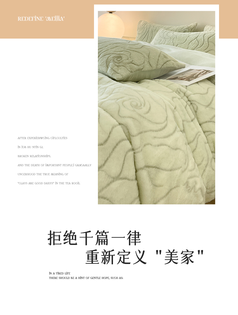 商品名称:798家纺 2025新款兔毛提花双拼四件套-简爱系列 玫瑰-豆绿