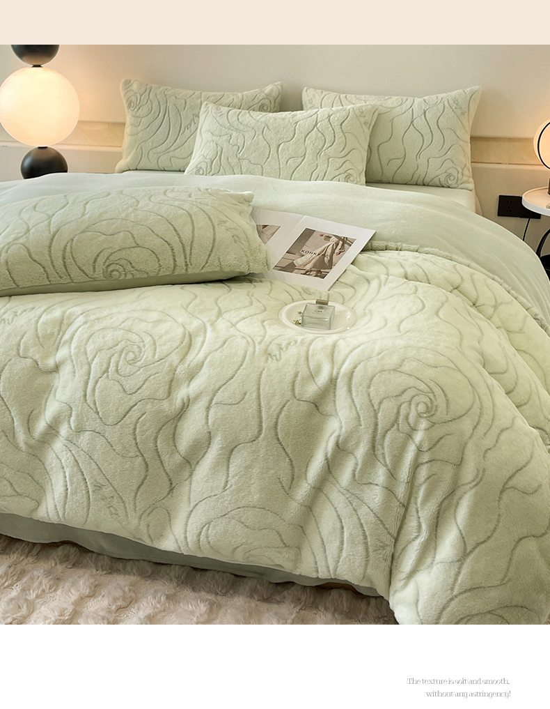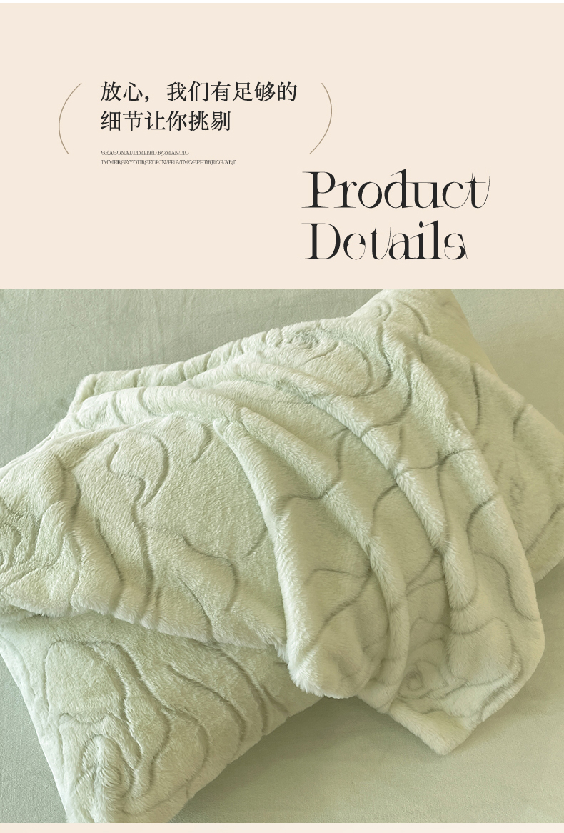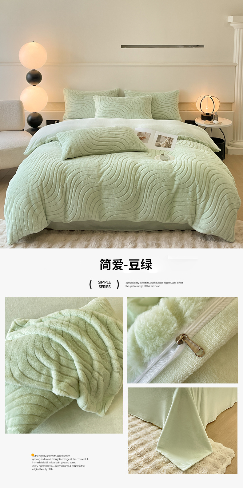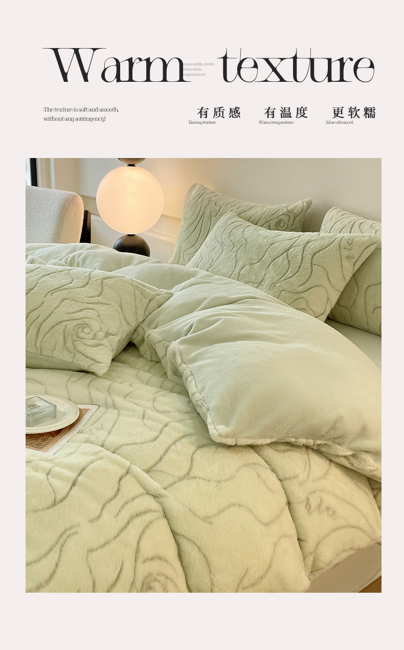 商品名称:798家纺 2025新款兔毛提花双拼四件套-简爱系列 玫瑰-豆绿