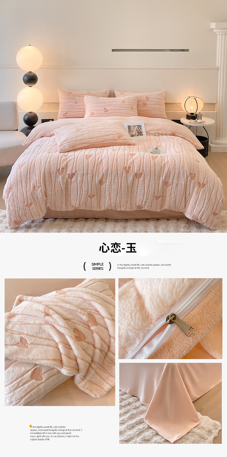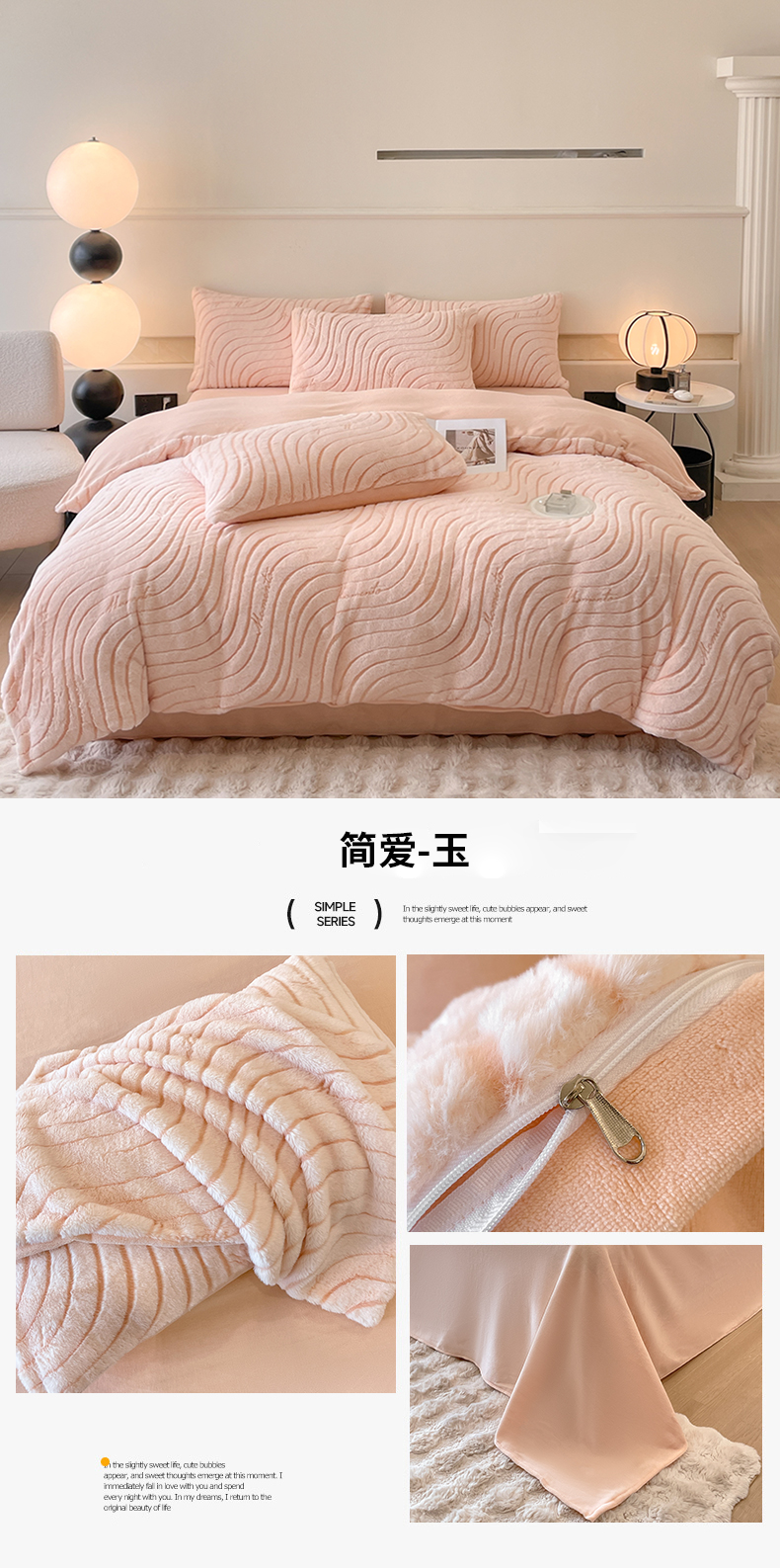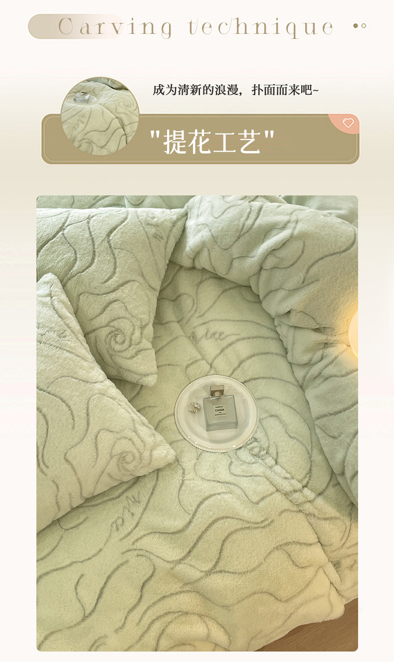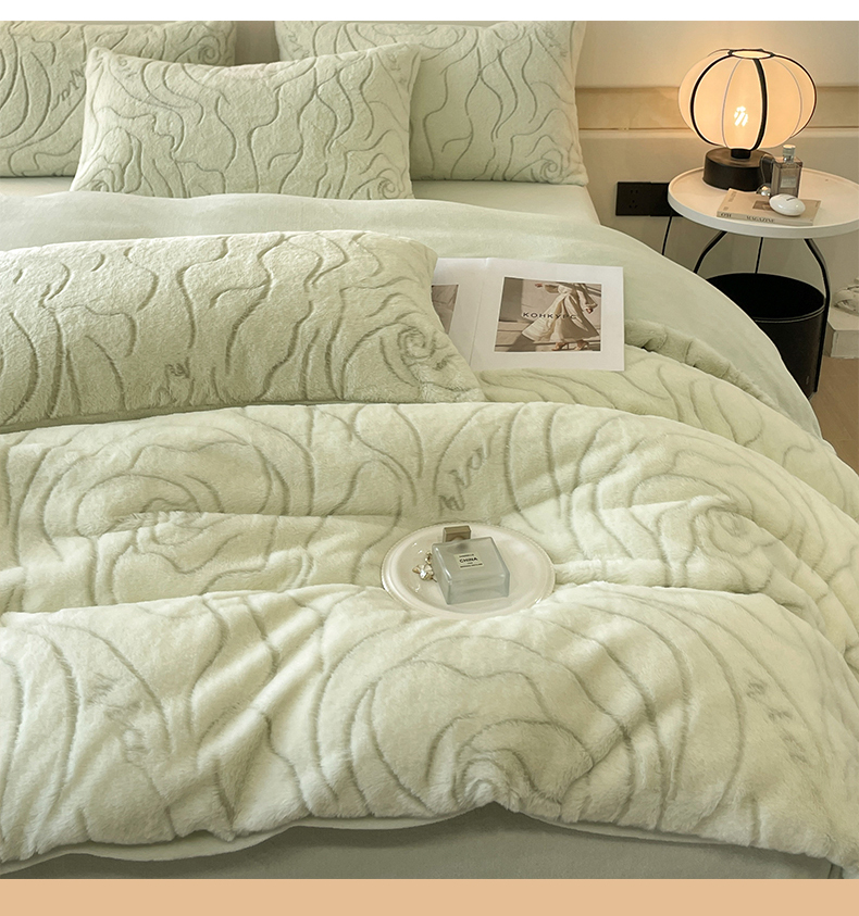 商品名称:798家纺 2025新款兔毛提花双拼四件套-简爱系列 玫瑰-豆绿