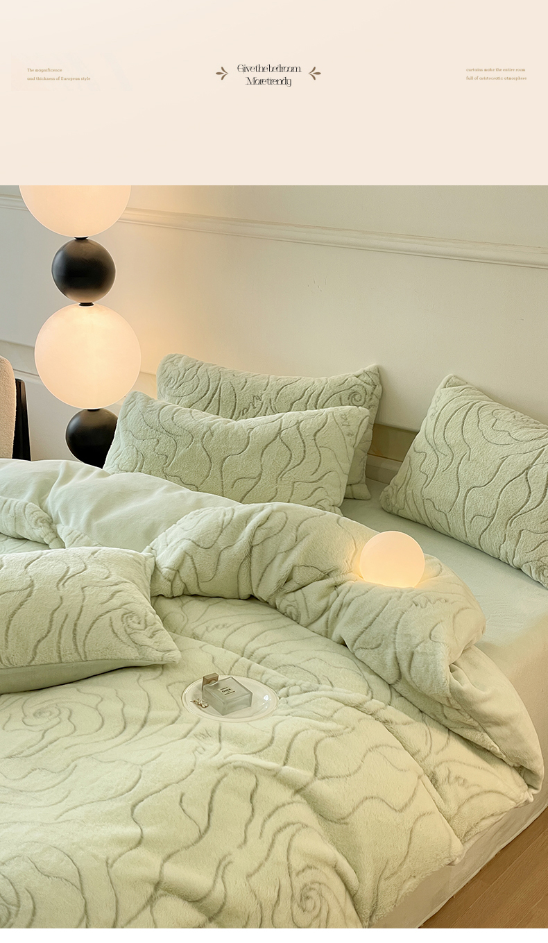 798家纺 2025新款兔毛提花双拼四件套-简爱系列 玫瑰-豆绿