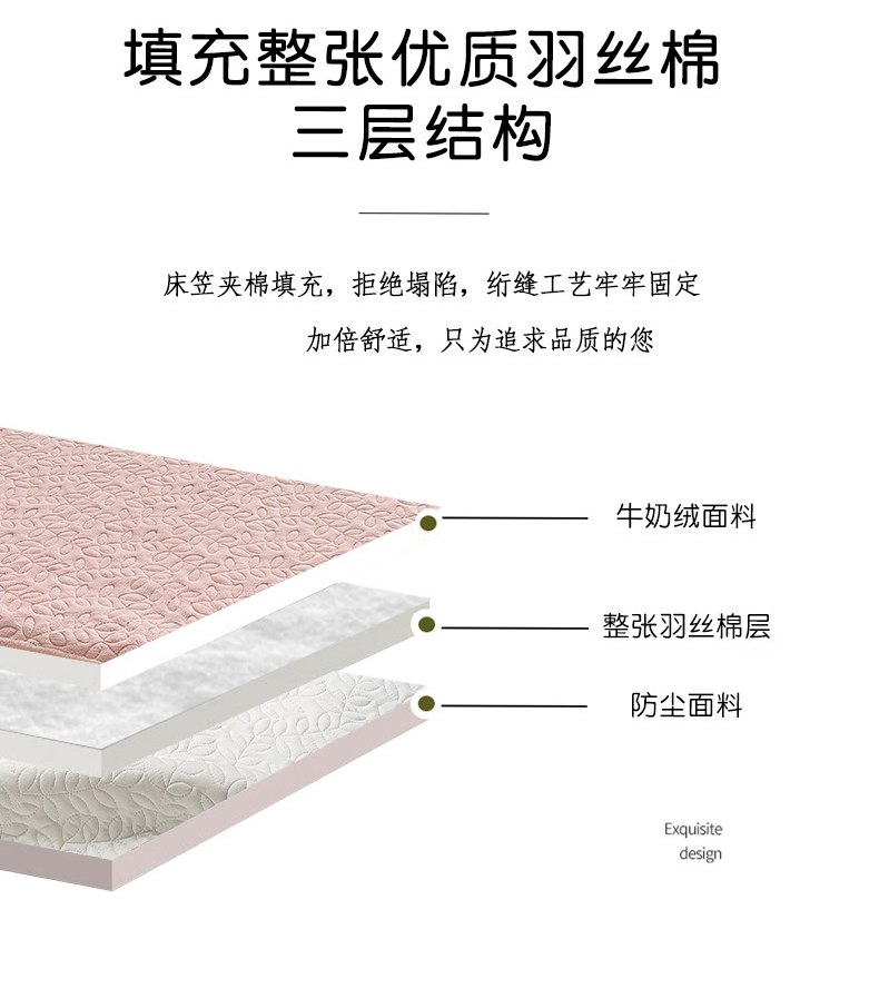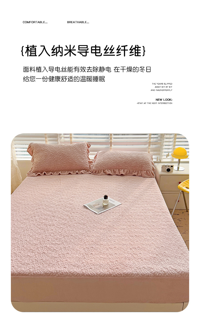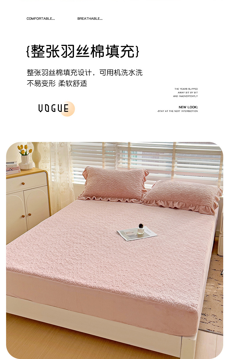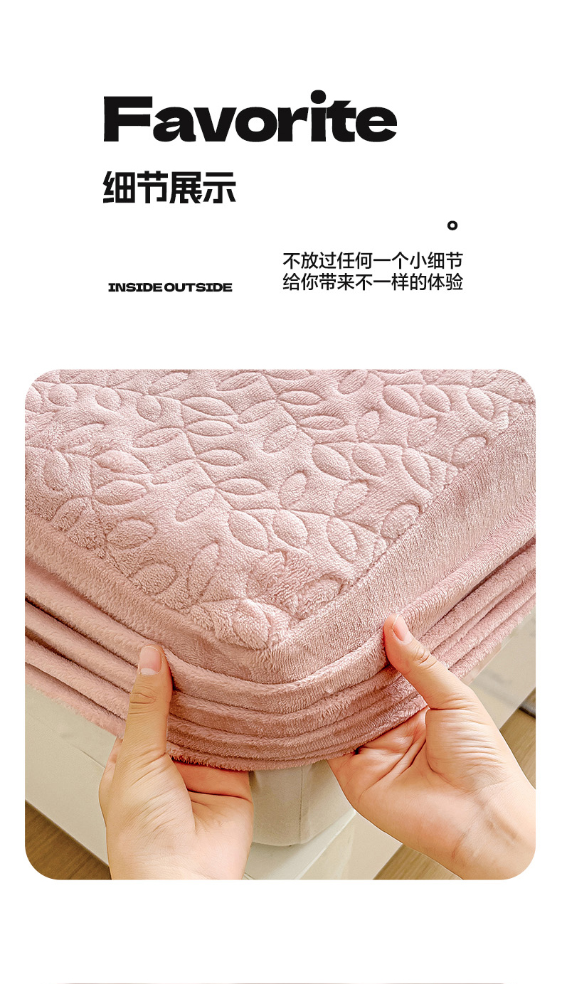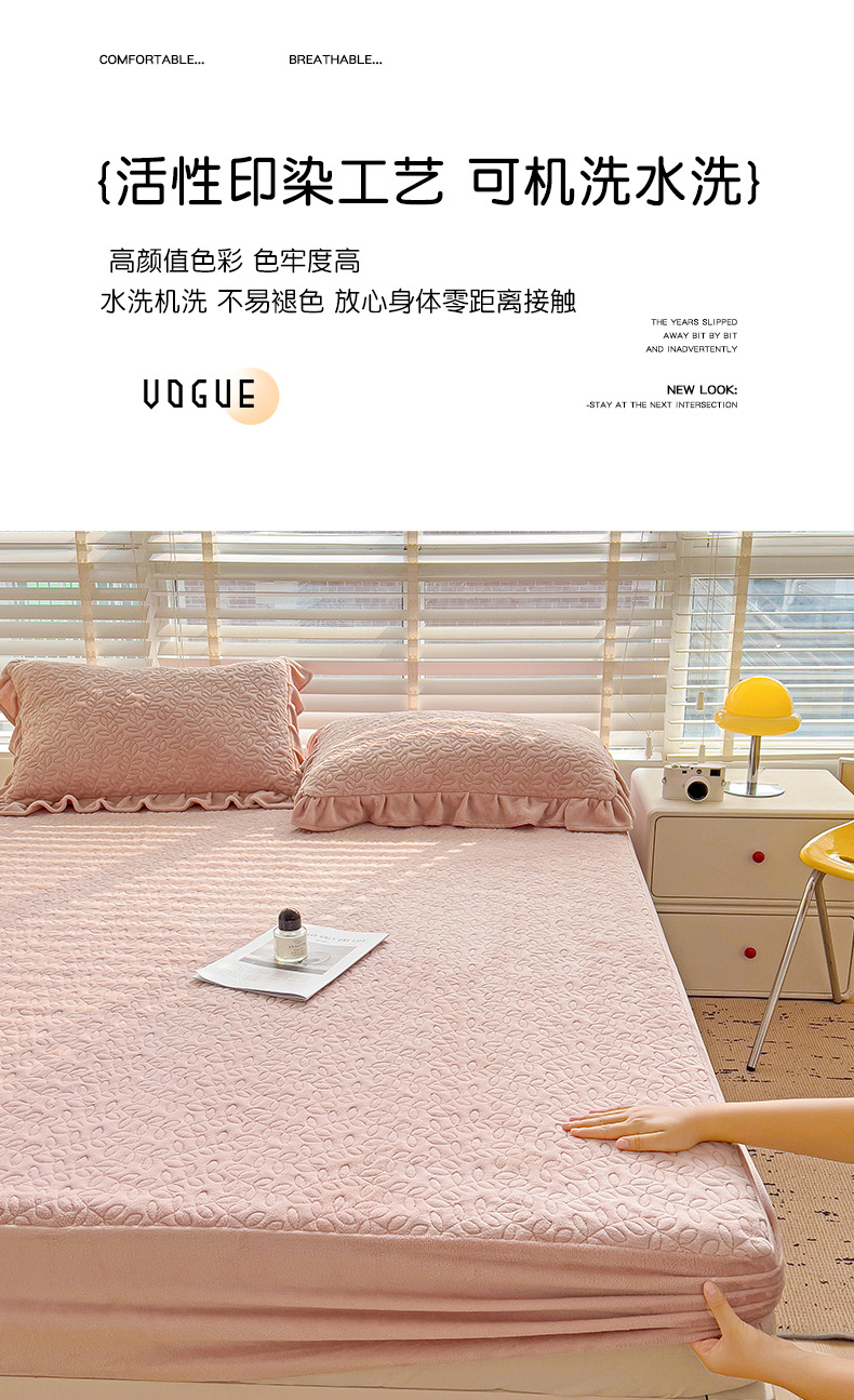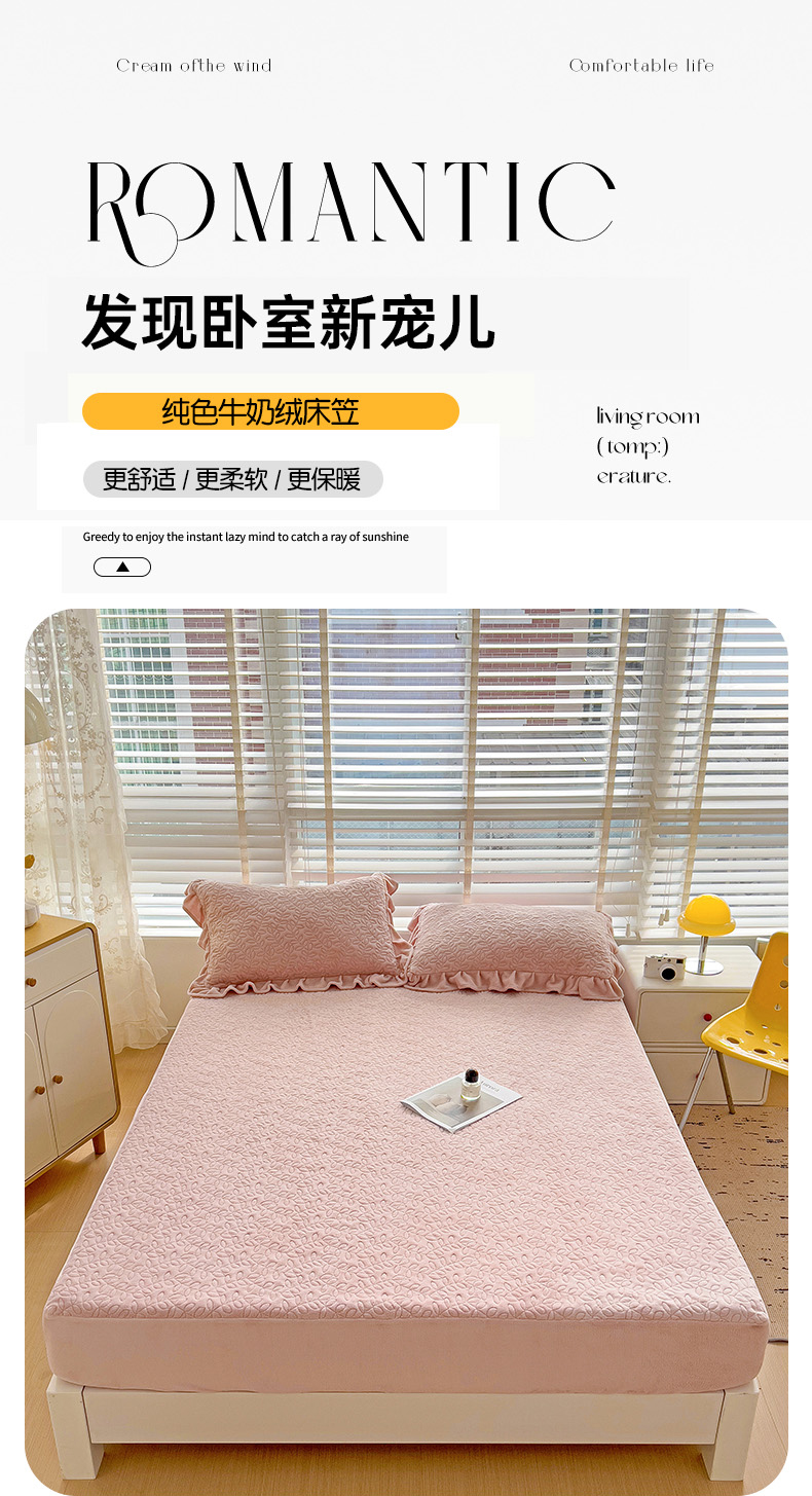 商品名称:漫时光 2025新款230g纯色牛奶绒夹棉床笠 床笠款罗曼-少女粉
