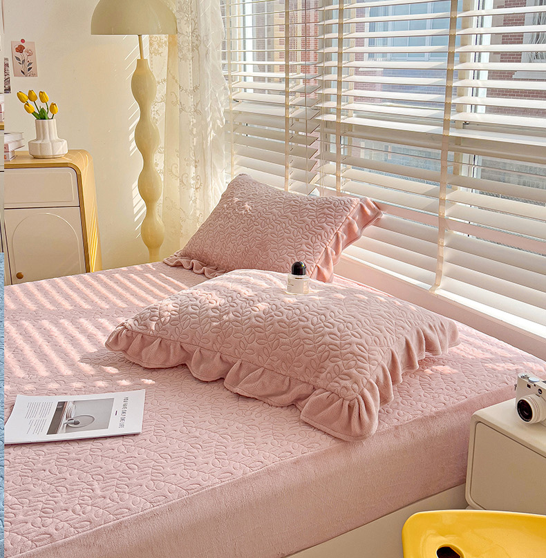 漫时光 2025新款230g纯色牛奶绒夹棉床笠 床笠款罗曼-少女粉