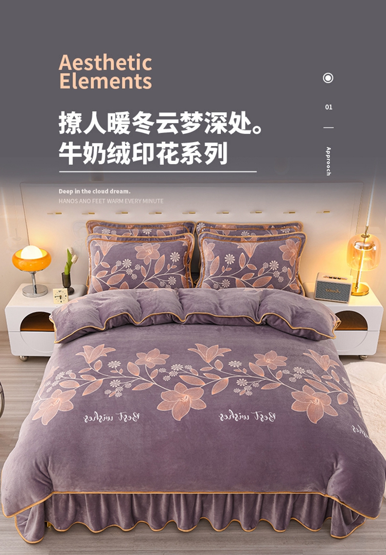 当前位置: 91家纺网 > 商品网购 > 床品套件 > 四件套 > 牛奶绒四件套 > 芯诗曼2025新款8.5斤直播热款高克重牛奶绒法莱绒水晶金貂法莱绒四件套花枝