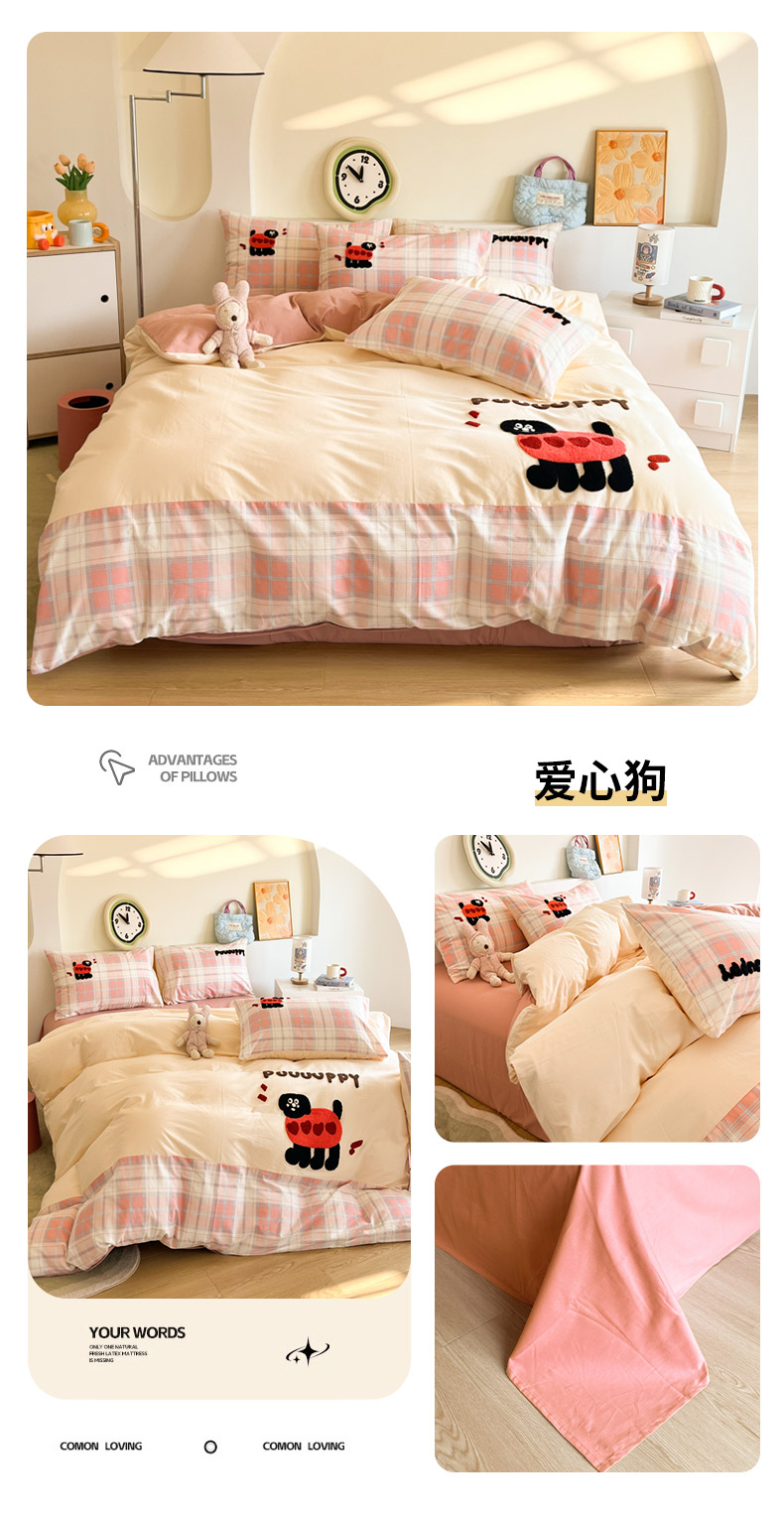 商品名称:千朵 2024新款全棉磨毛绣花毛巾绣四件套 爱心狗