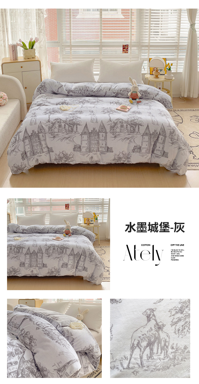 商品名称:雅萱家纺 2024新款牛奶绒单被套 被套-水墨城堡-灰