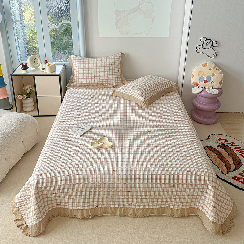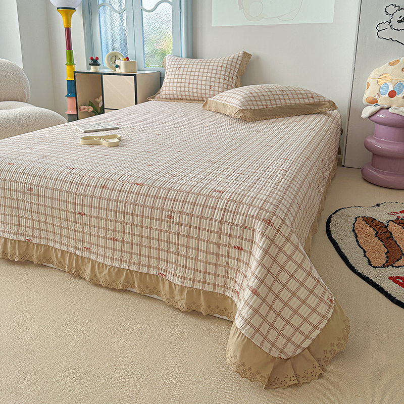 (总)源舜家纺2025新款色织水洗棉全棉法式花边款床盖,色织粉格,色织黄格,色织灰白格,色织灰咖格,色织蓝格,色织绿格,色织深蓝格