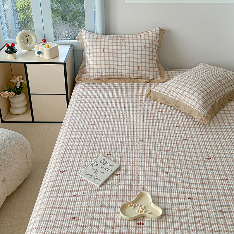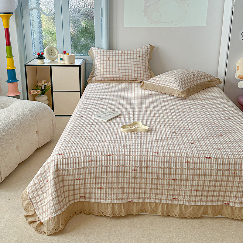 (总)源舜家纺 2025新款色织棉简约韩系花边床盖三件套,简约灰,简约粉,简约绿,简约驼,简约蓝