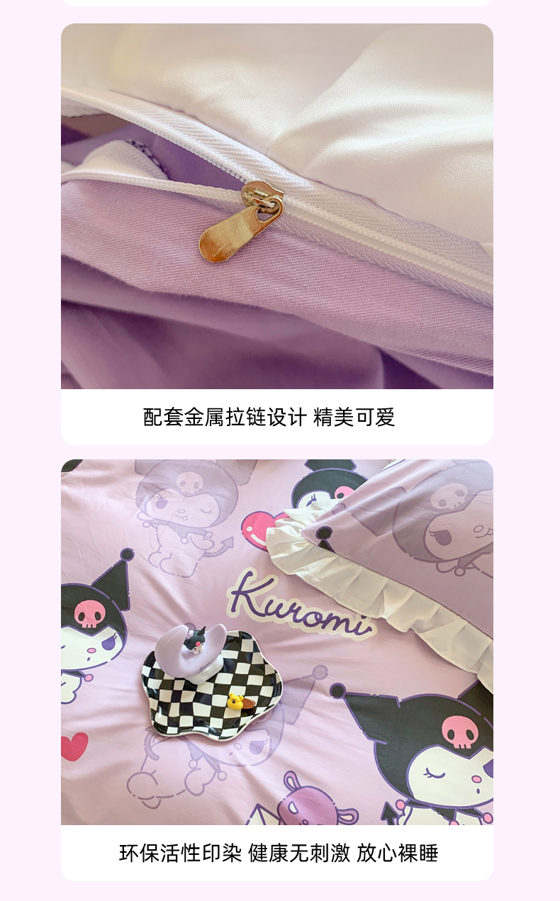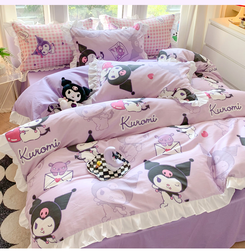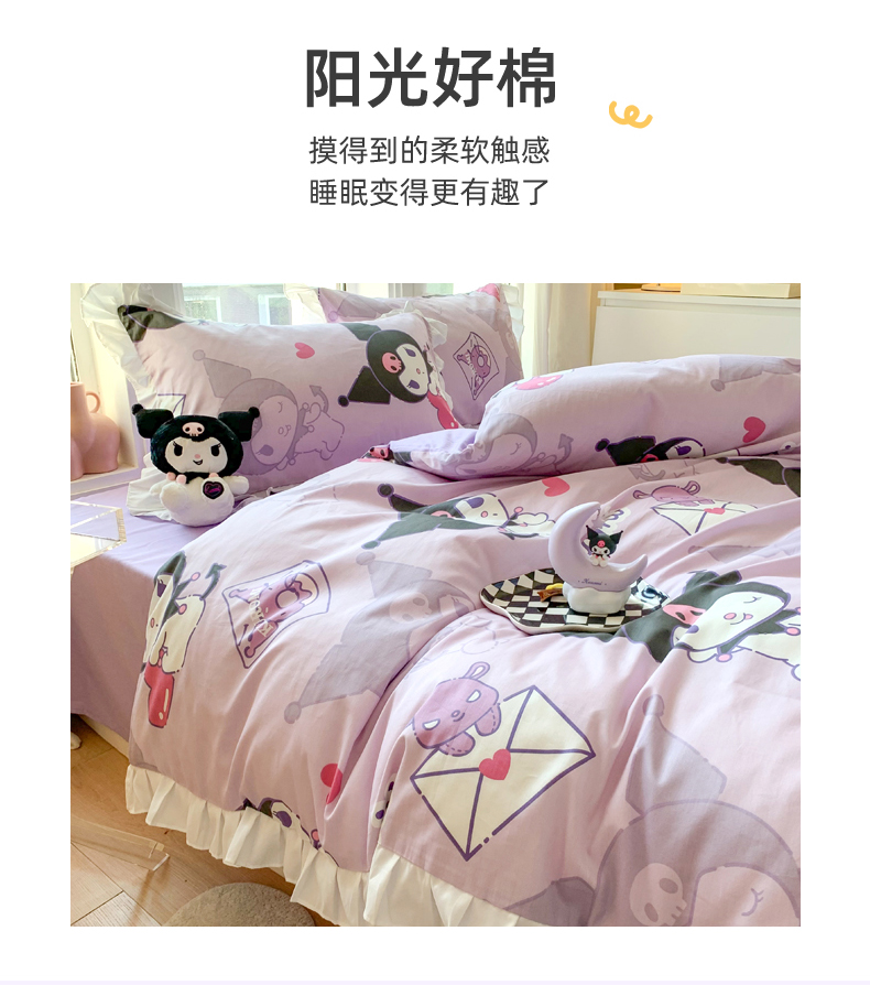 当前位置: 91家纺网 > 商品网购 > 床品套件 > 四件套 > 全棉普通四件套 > 玉元坊 2025新款三丽鸥系列白花边被套纯棉全棉床裙三件套四件套-库洛米白花边款式 库洛米