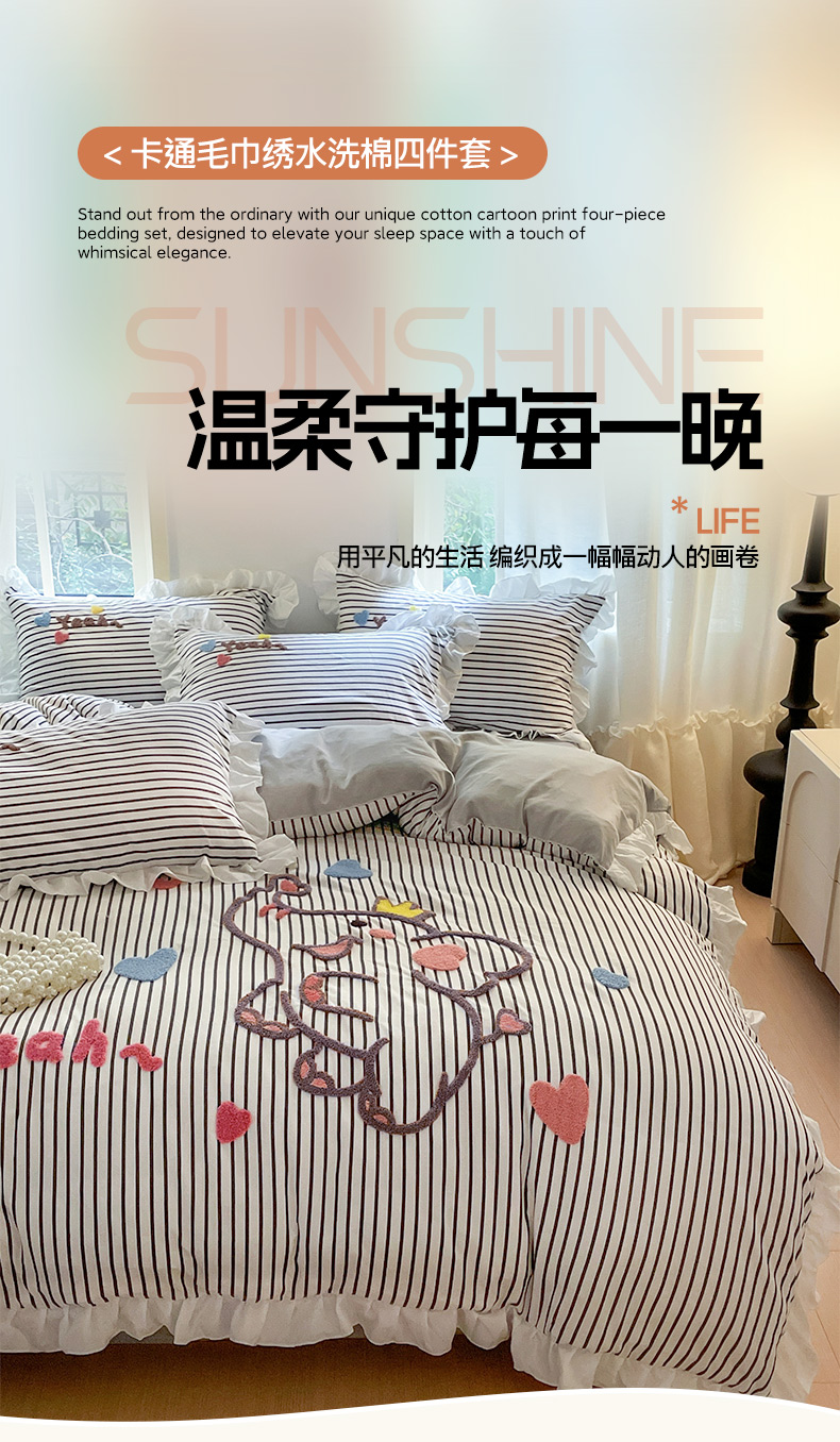 当前位置: 91家纺网 > 商品网购 > 床品套件 > 四件套 > 毛巾绣四件套 > 泉欣家纺 2025新品韩系网红水洗棉卡通毛巾绣花小象考拉系列四件套(专版花型) 萌小象高级灰