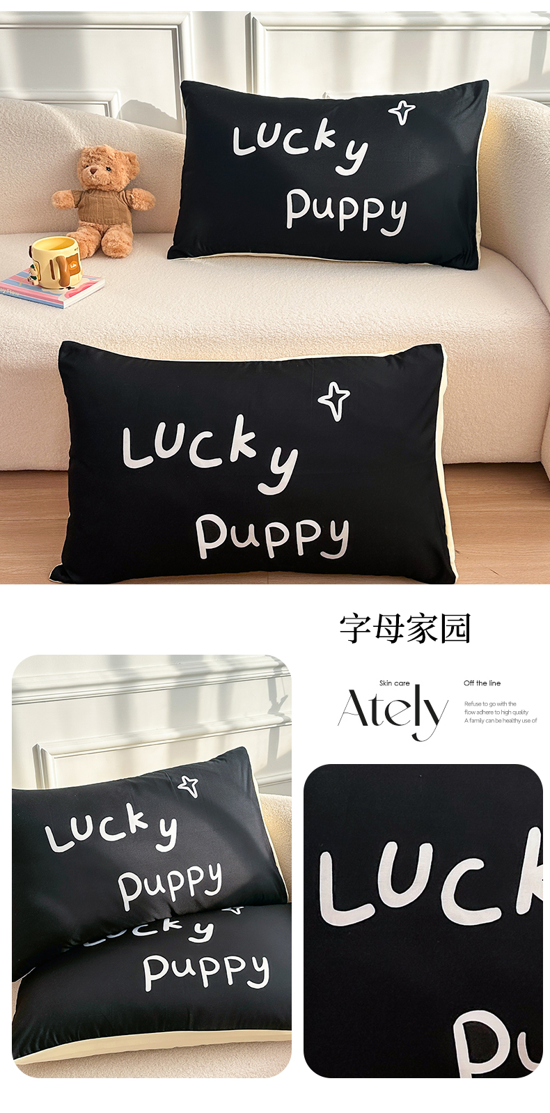 多品家纺 2025新款大版系列超柔水洗棉枕套 大版字母家园