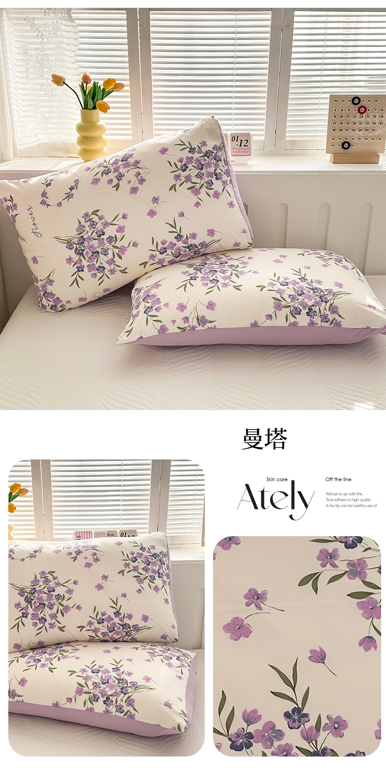 商品名称:多品家纺 2025新款花卉系列超柔水洗棉枕套 曼塔
