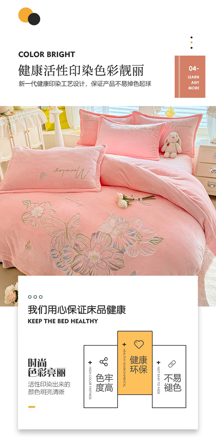 (总)漫布云2025秋冬新款全消光大版花卉平绣牛奶绒刺绣款四件套--绽放系列,绽放-艾玛橙, 绽放-豆沙红 ,绽放-樱花粉, 绽放-婴儿蓝 ,绽放-高级灰,绽放-梦幻紫
